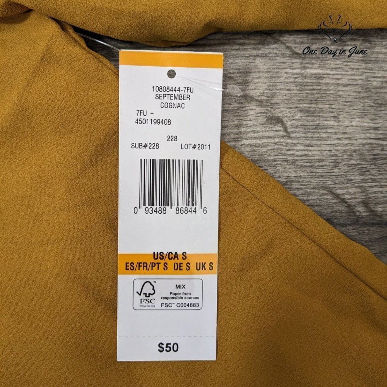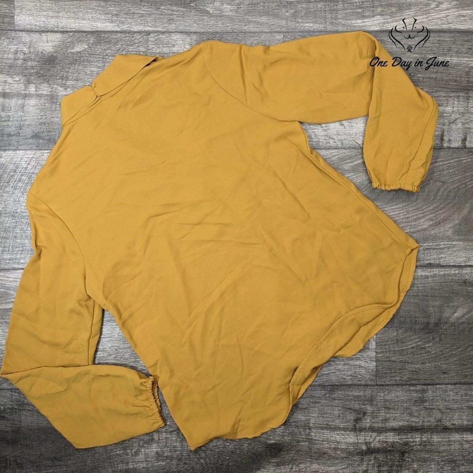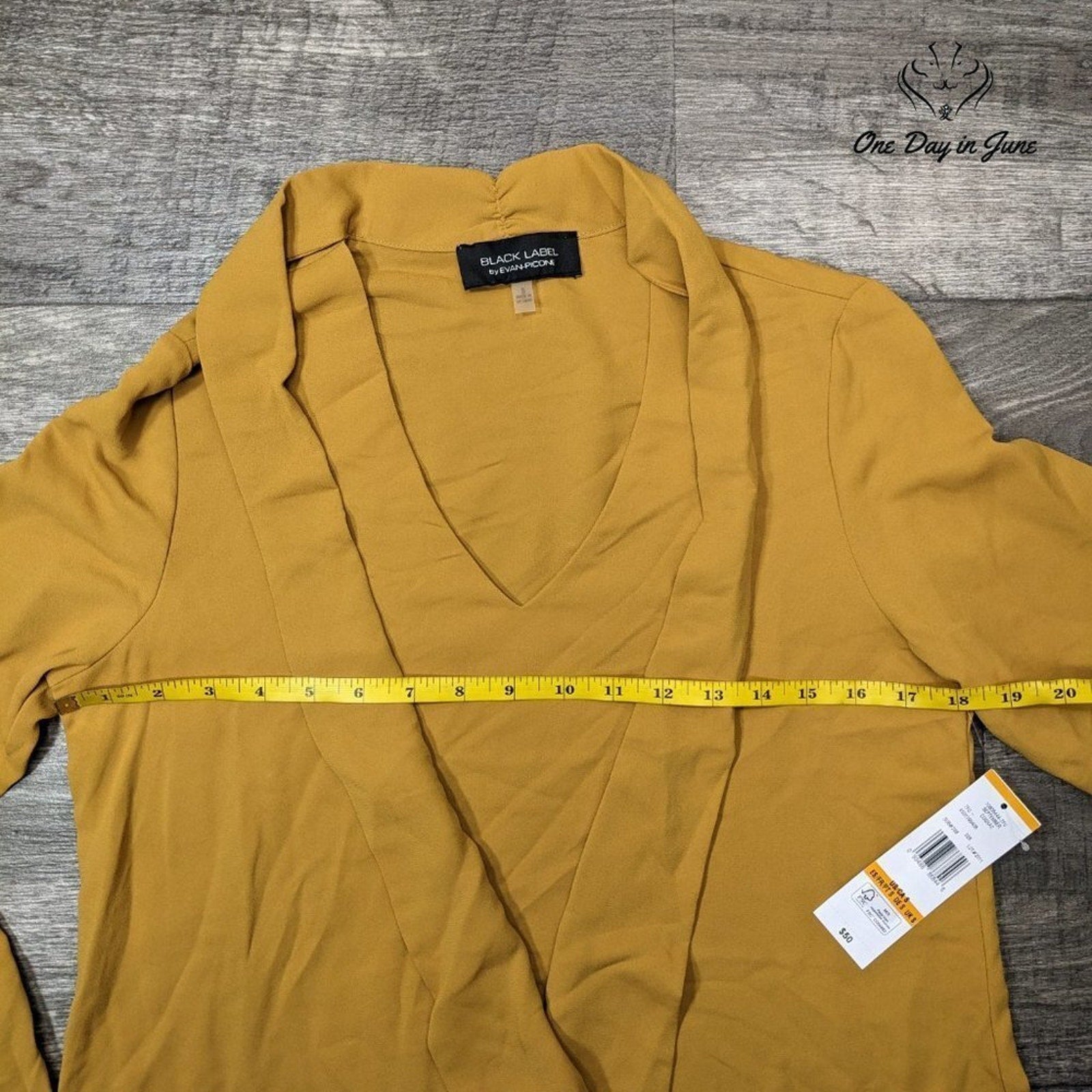 In a hue of sunshine mellow, arrives the blouse from Evan Picone fellow. Crafted in polyester, it's new with tags, a long-sleeve delight that never sags!