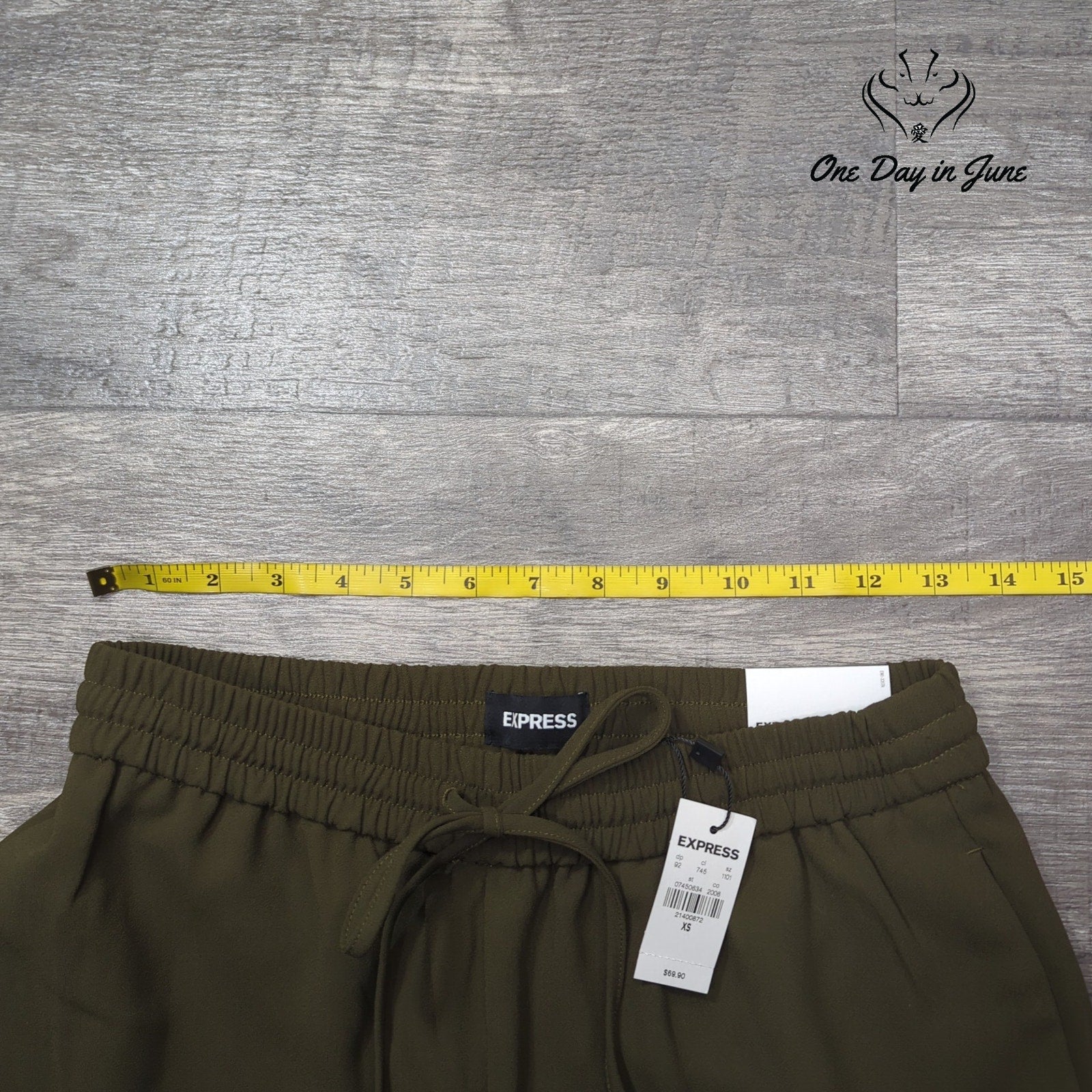 These ankle pants from Express hit at mid-rise and come screaming in green like a neon cactus in the desert twilight, fresh with tags still attached like a virgin promise. The polyester weave moves with you through the madness of modern life, whether you're stalking deals at the farmer's market or fleeing another awkward brunch with your ex's mother. Slip into these beauties and feel the savage freedom of properly tailored leg coverage that says you mean business but refuse to be boring about it.