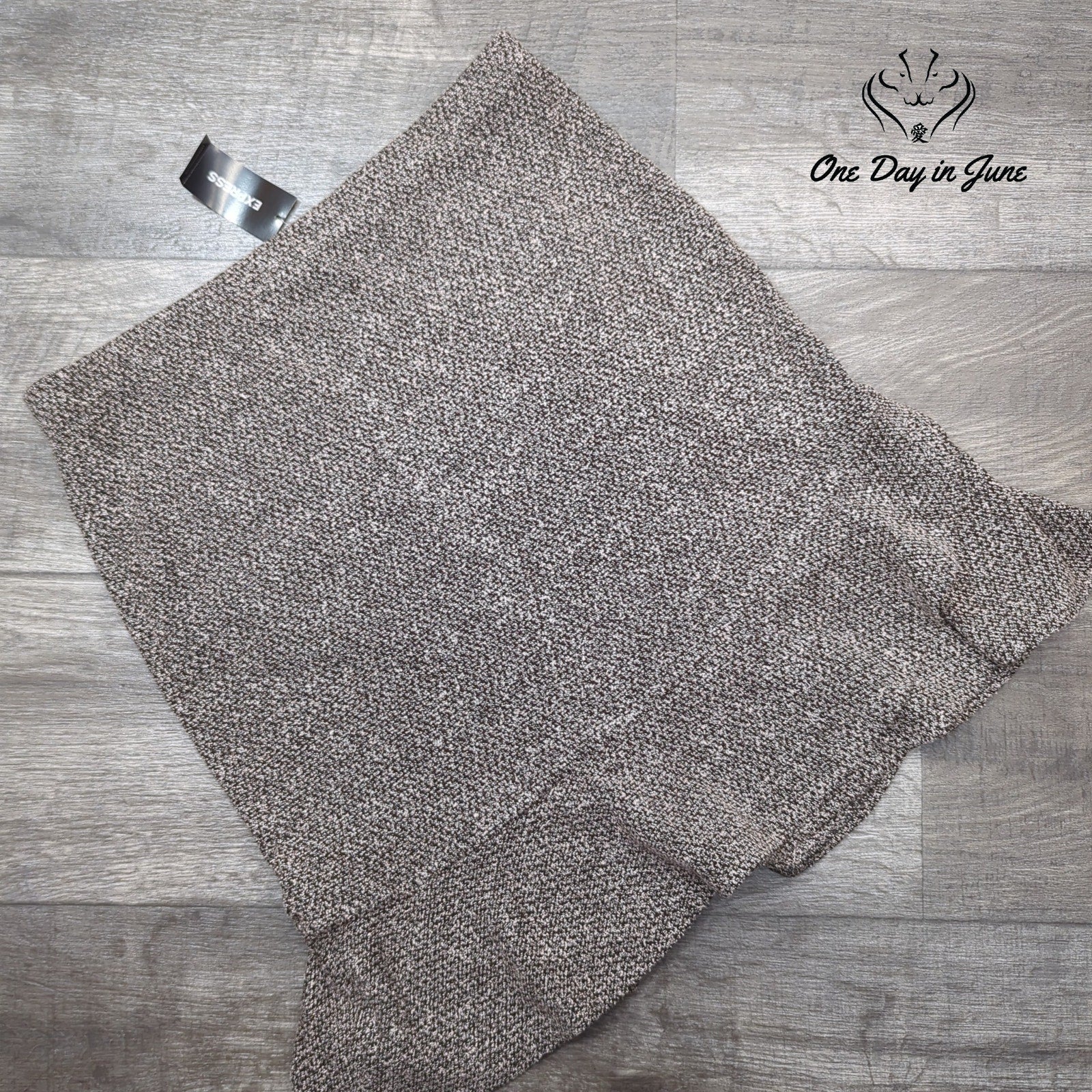 A most becoming brown skirt of enviable comfort, crafted from a delightful blend of rayon, polyester, and acrylic that drapes elegantly upon the figure. The comfort waistband ensures a most agreeable fit, making it a versatile addition to any genteel lady's wardrobe.