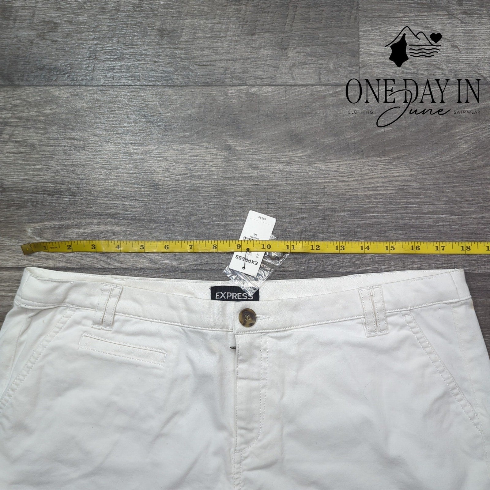 Oh my stars, these white denim shorts are quite the sight, perfect for days when the sun shines bright! From Express they came, soft and new, with cotton so fine they'll comfort you too!