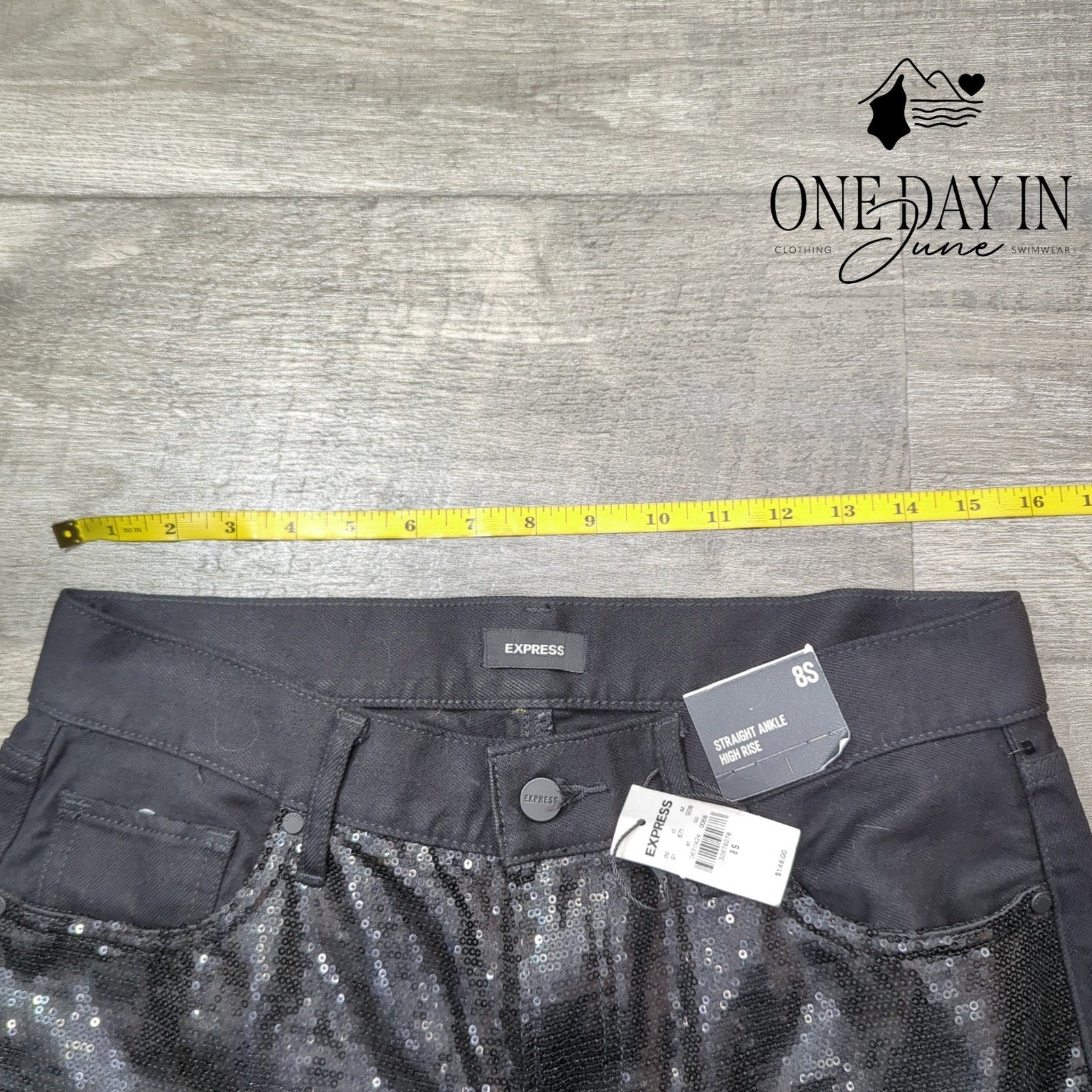 Express Sequin Straight Ankle High Rise Jeans Size 8S