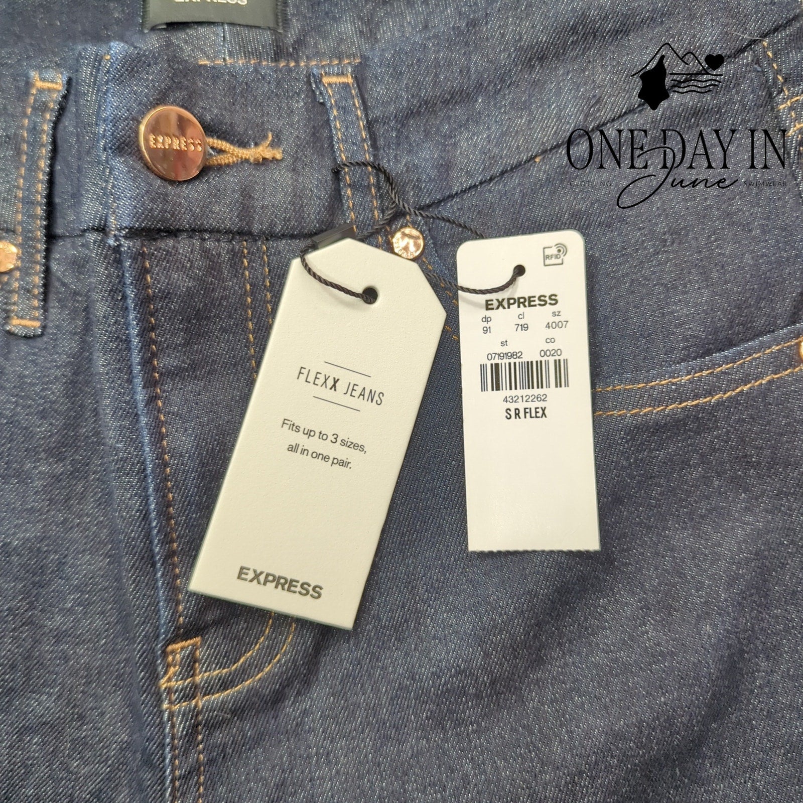 These exquisite skinny jeans from Express embody the modern woman's quest for both comfort and sophistication, crafted with an ultra hyper flex blend that moves like liquid mercury against the skin. The mid-rise silhouette flatters with the precision of a perfectly composed sonnet, while the classic blue hue whispers of endless summer afternoons and metropolitan adventures. Brand new with tags, they await their debut performance on the grand stage of contemporary fashion.
