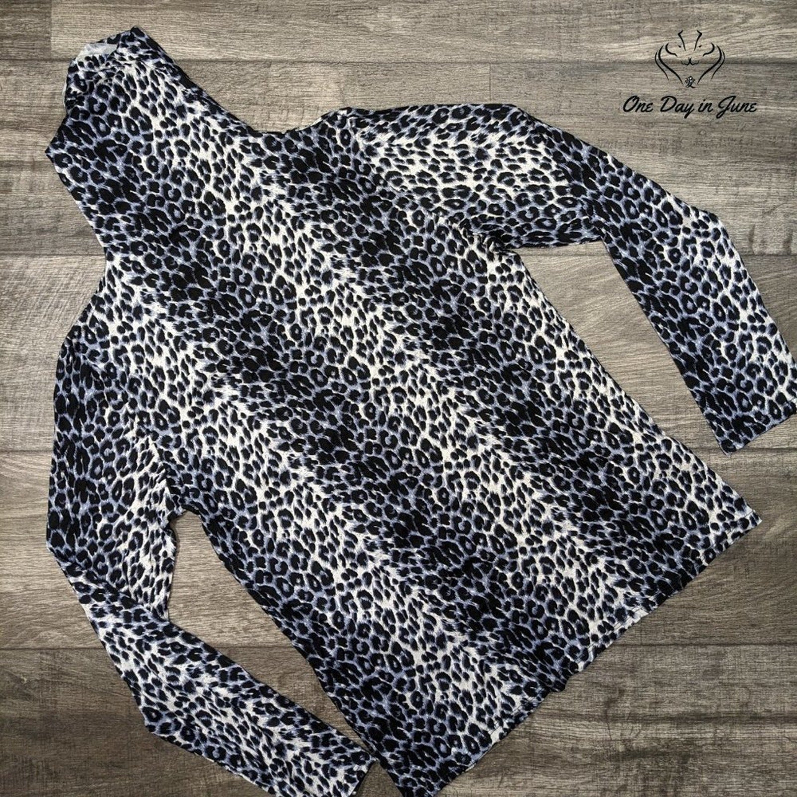 With spots so bold in black and white, this lovely leopard top's a pure delight! A comfy long-sleeved top that's stretchy and new, in a wild print that's perfect for you.