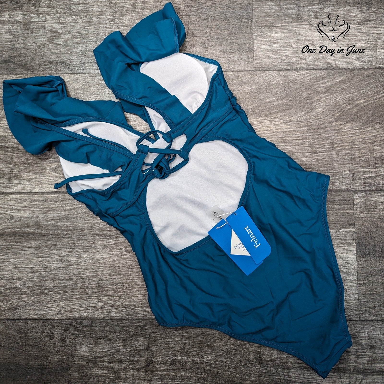 Felnart V Neck Lace Up Tummy Control One Piece Size M