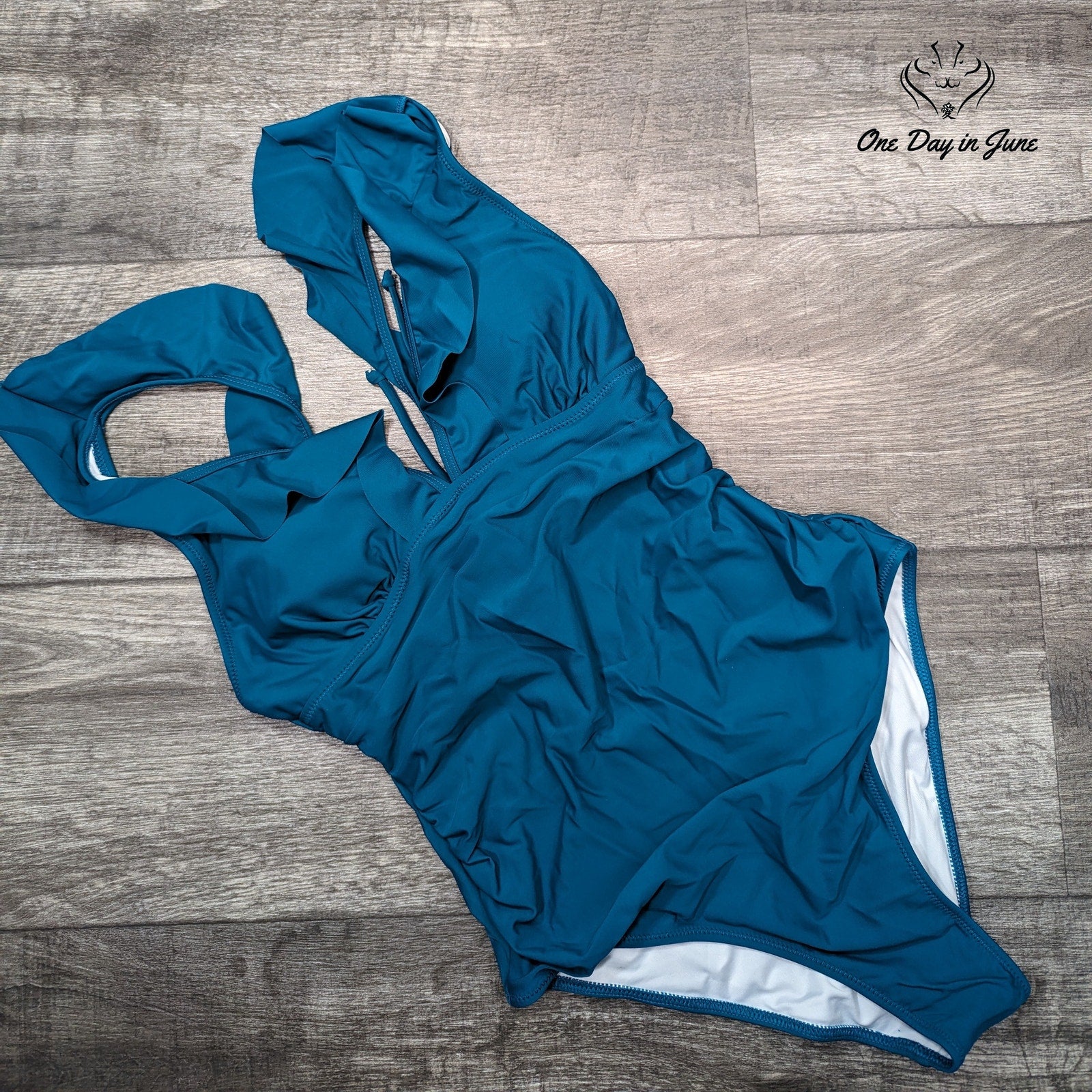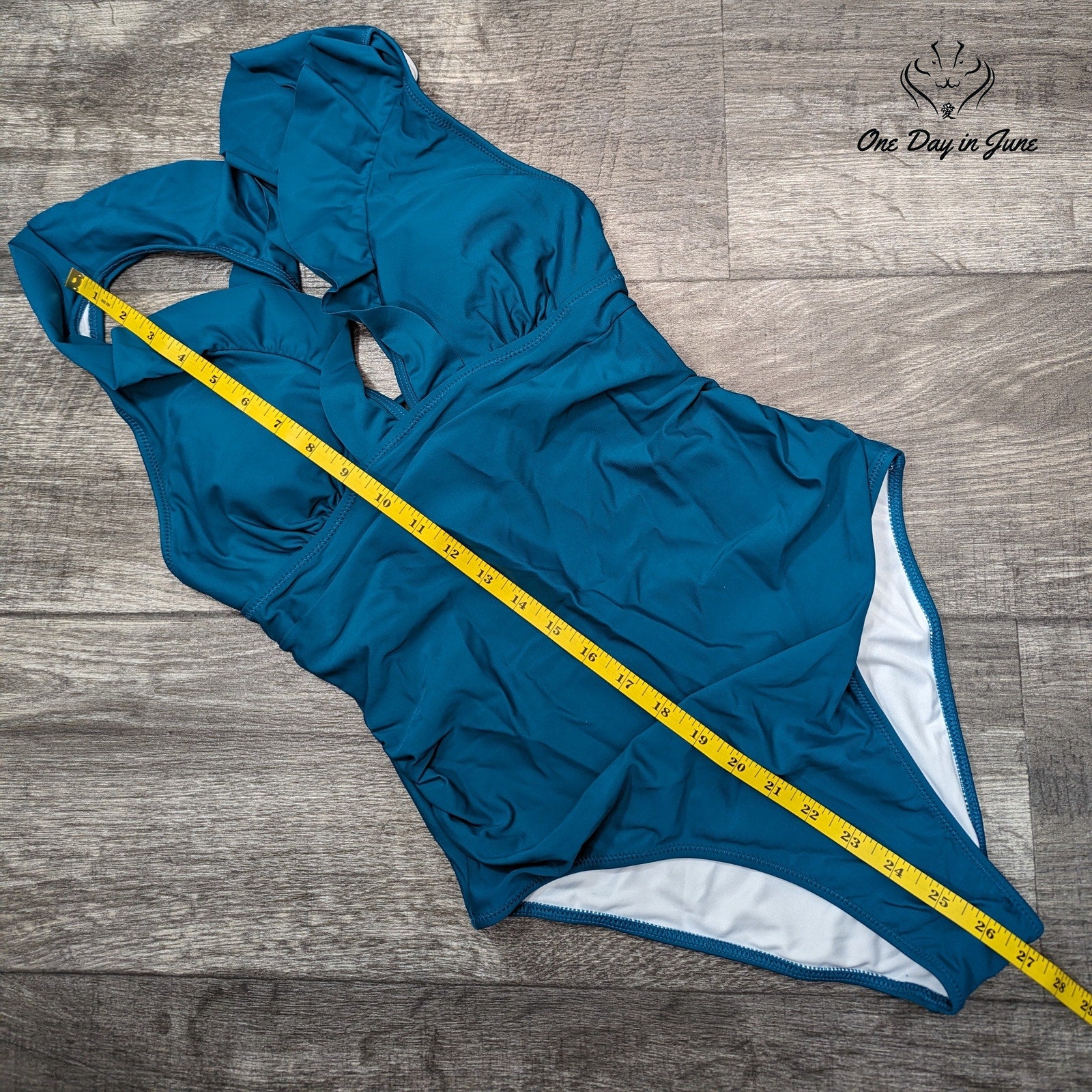 With a hue so teal and a lace-up appeal, this Felnart one piece is the real deal. Slip into this tummy-control delight, made of polyester and spandex so it fits just right.