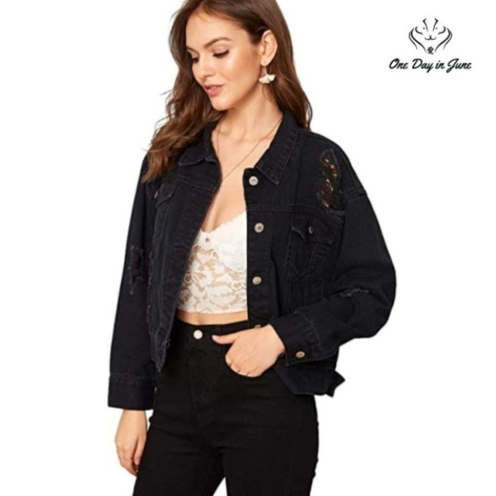 A savage journey into the heart of fashion's dark underbelly, this black denim jacket unleashes the primal scream of distressed fabric. Ripped and torn like the tattered edges of reality, it's a brutal assault on conformity, a long-sleeved middle finger to the establishment that dares you to embrace the chaos.