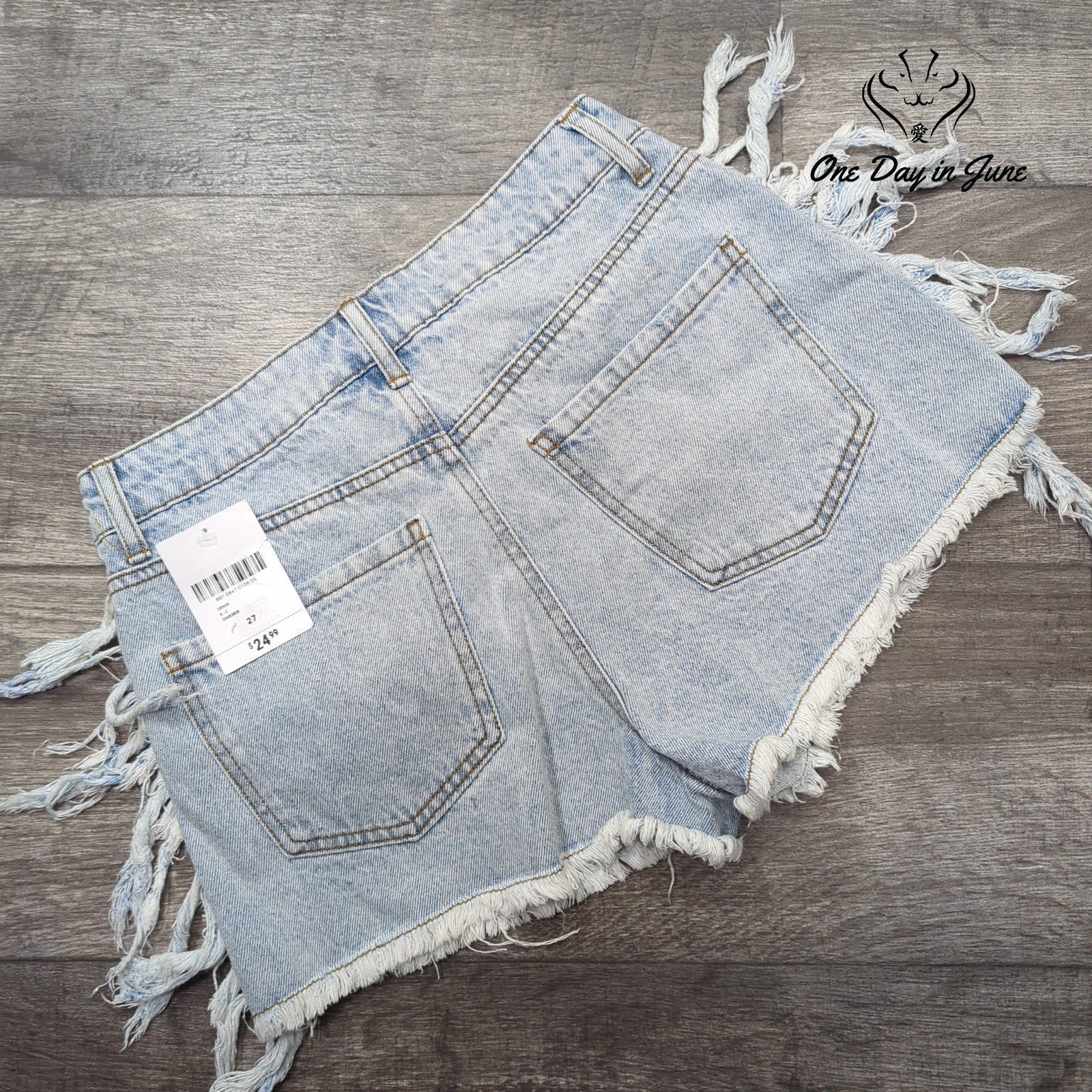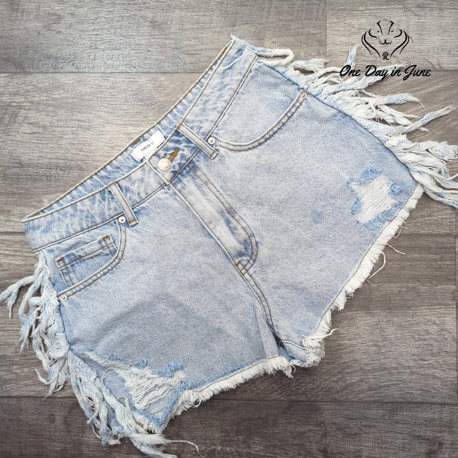 These charming denim shorts from Forever 21 possess all the casual elegance a modern lady might desire, crafted from the finest cotton and rendered in a most becoming shade of blue. Never worn and still bearing their original tags, they promise to be a most agreeable addition to any fashionable woman's summer wardrobe.