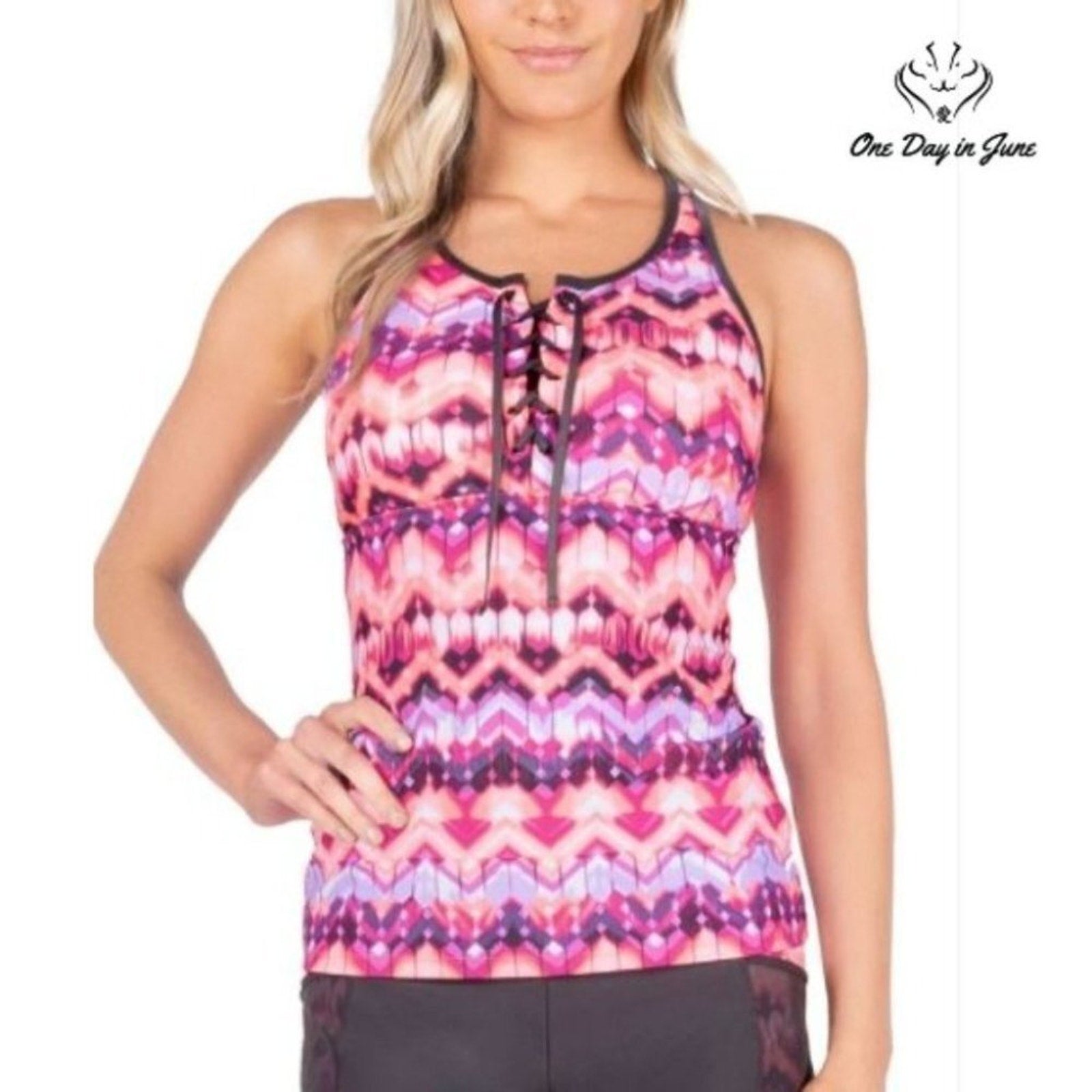 Free Country Zig Zag Lace Up Racerback Tankini Top Size S