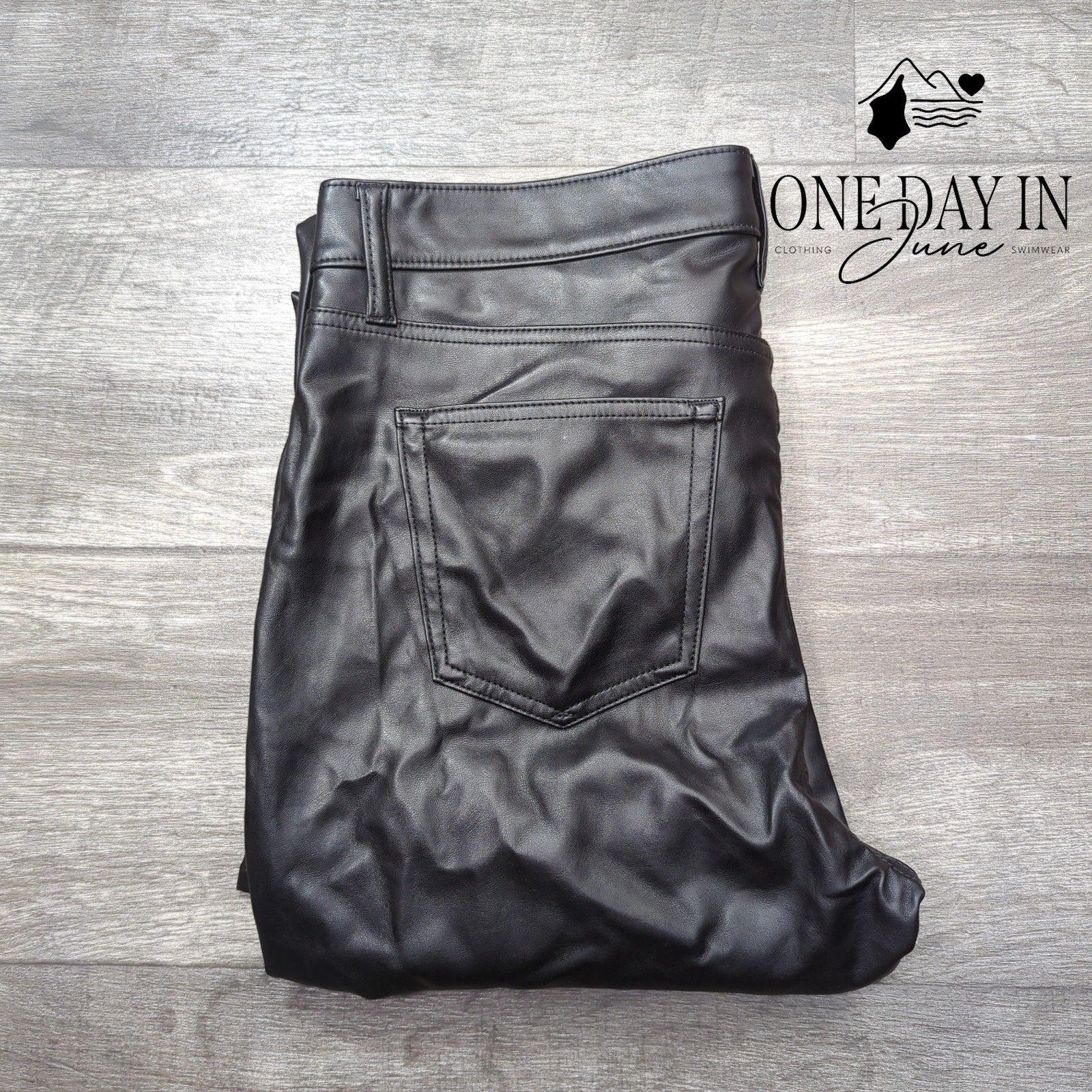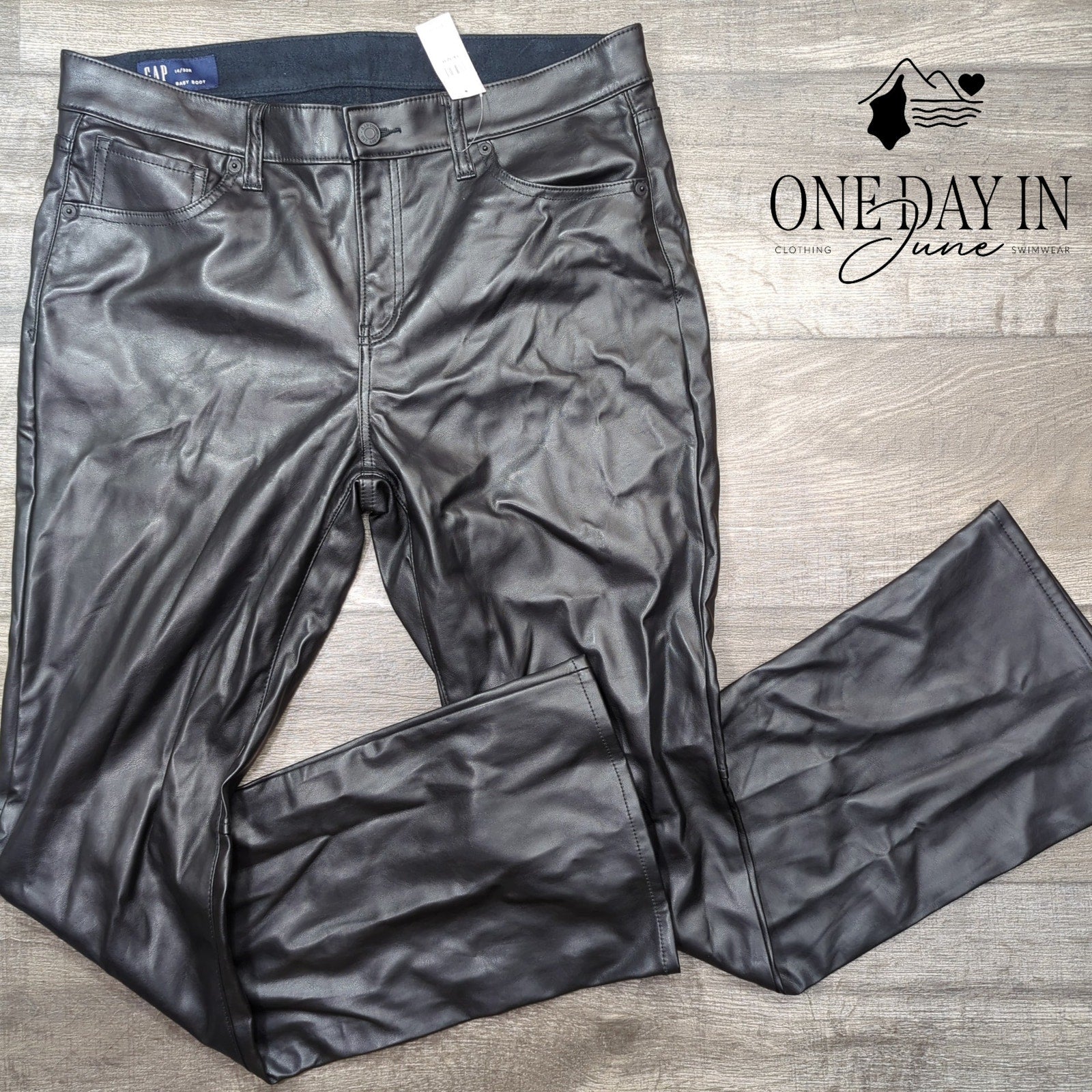 These charming faux leather jeans from Gap possess all the sleek sophistication one could desire for making a striking impression in polite society. The rich black hue lends itself beautifully to both daytime excursions and evening entertainments, while the boot cut silhouette flatters the figure most agreeably. A delightful addition to any lady's wardrobe who wishes to embrace a touch of modern elegance with considerable style.