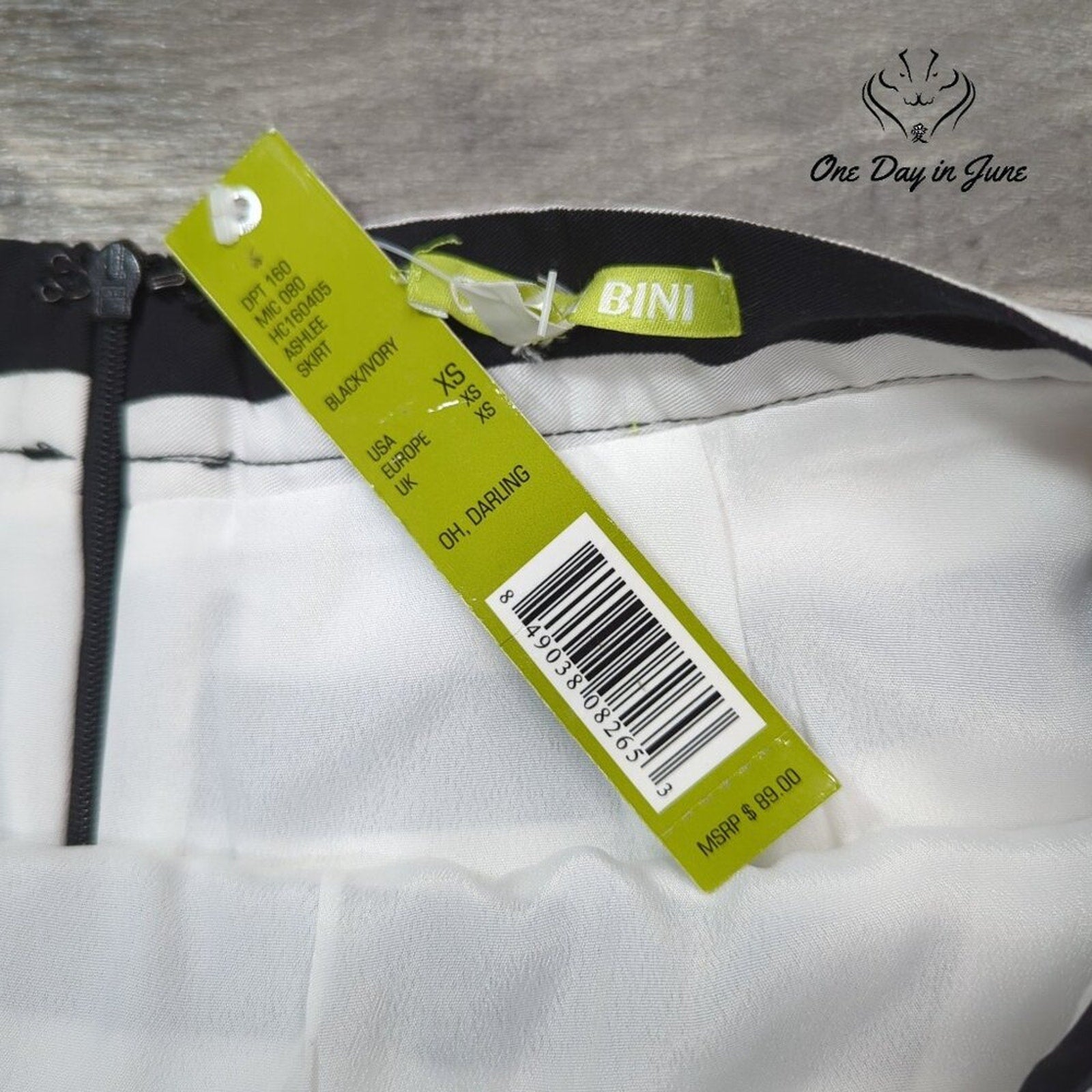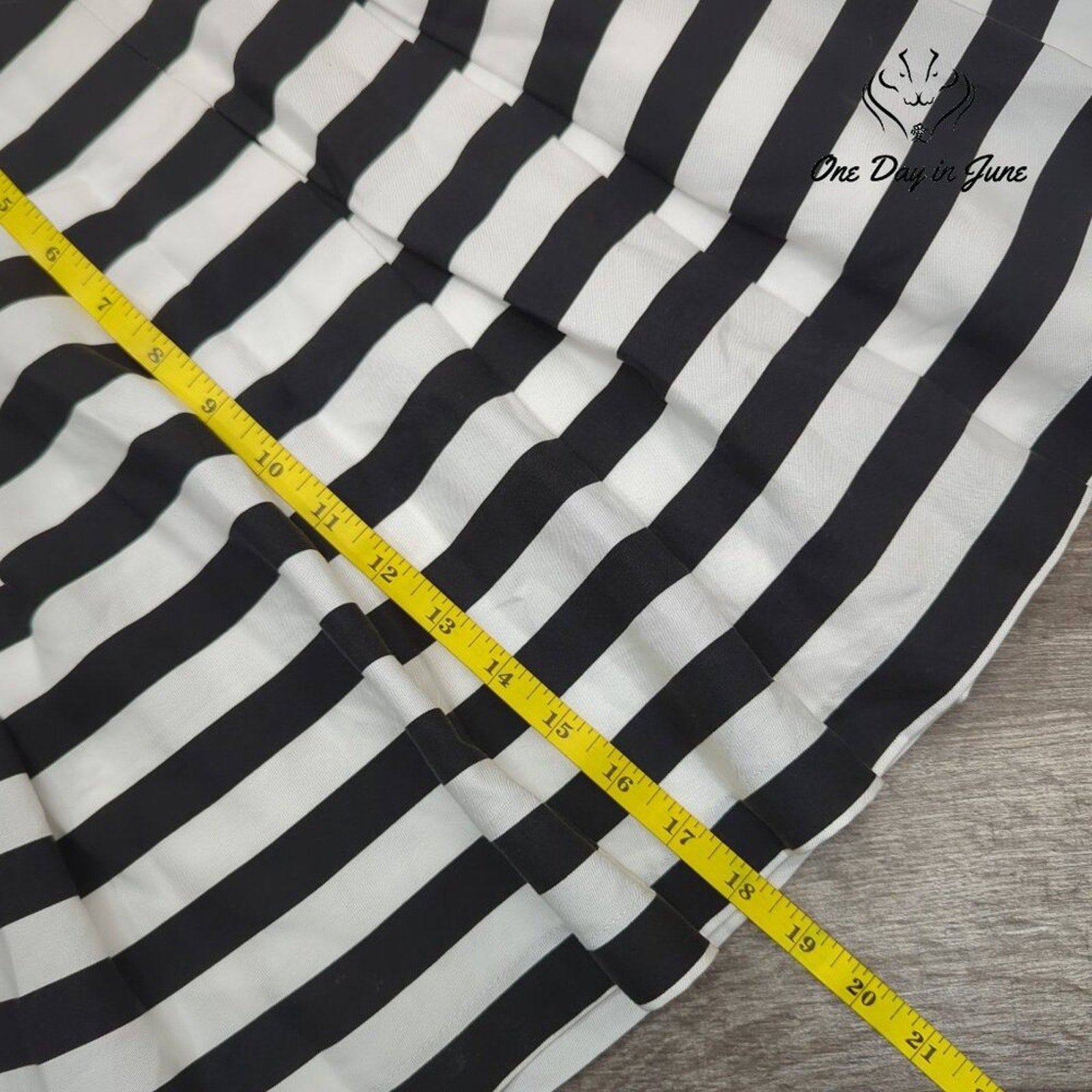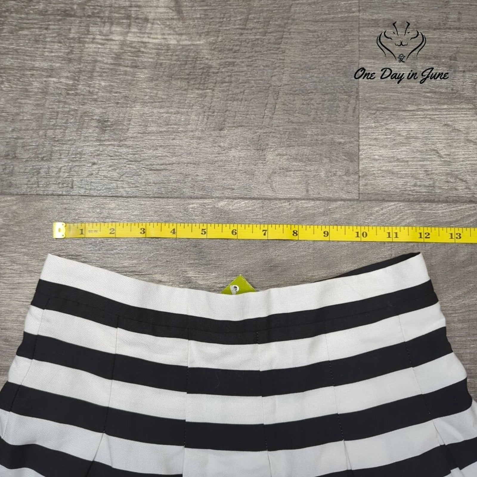 Exuding an air of simplicity and elegance, this Gianni Bini Striped A Line Mini Skirt is a timeless addition to any lady's wardrobe. Fashioned in black and white stripes from luxurious Tencel, it is brand new, complete with tags, and lined with polyester for a touch of comfort. Perfect for the modern woman who appreciates a dash of classic charm!