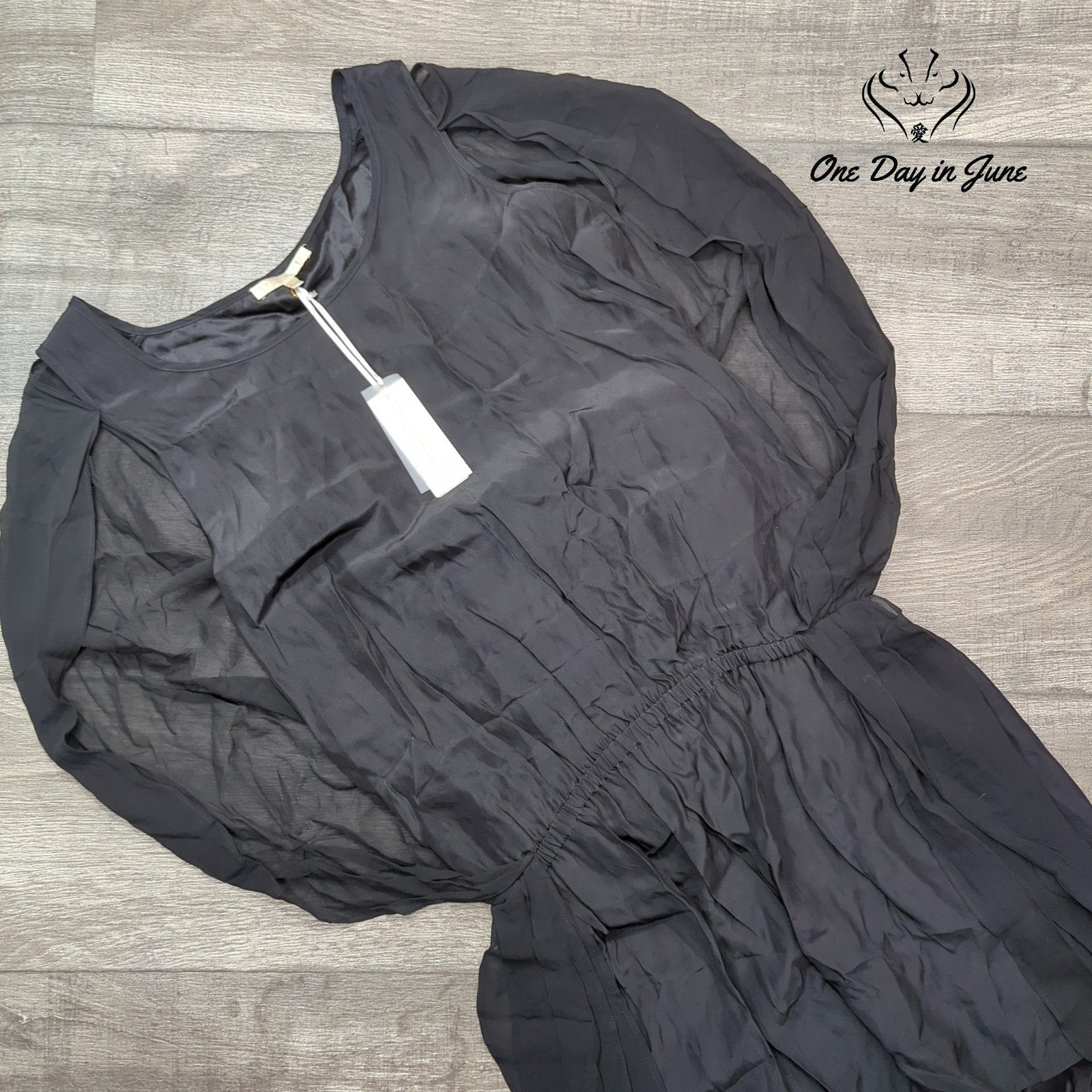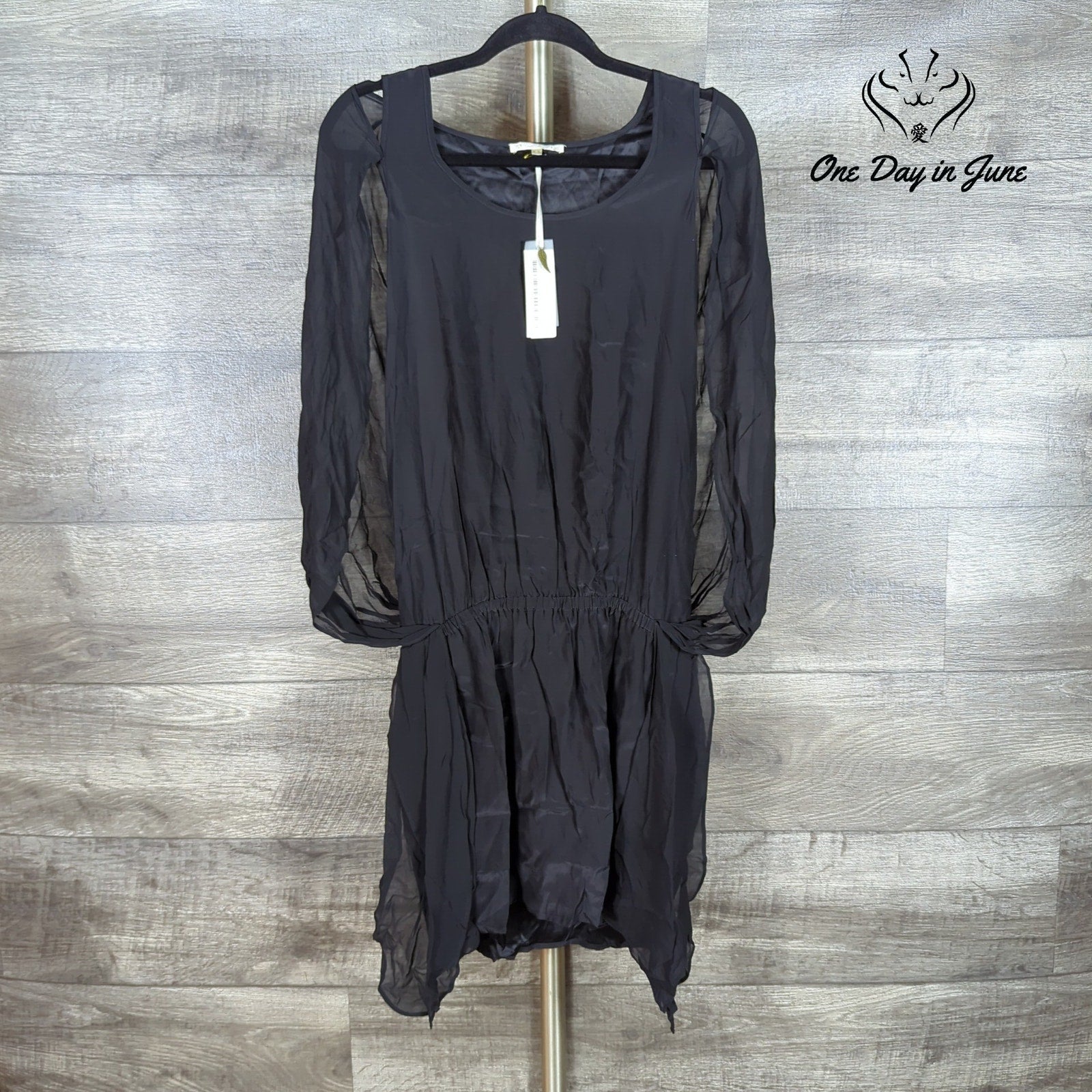 The silken darkness drapes across reality like a thousand whispers from some forgotten dream, manifesting itself in this ethereal caplet dress from Gold Hawk that flows with the gentle madness of midnight shadows. This brand new ethereal creation, still bearing its pristine tags, beckons with the siren song of pure silk, promising to transform its wearer into something beyond the mundane constraints of ordinary existence.