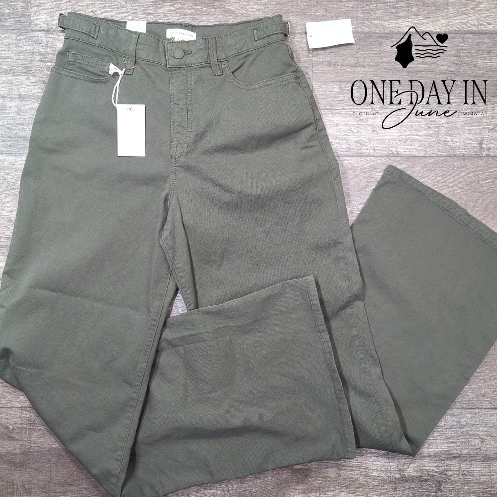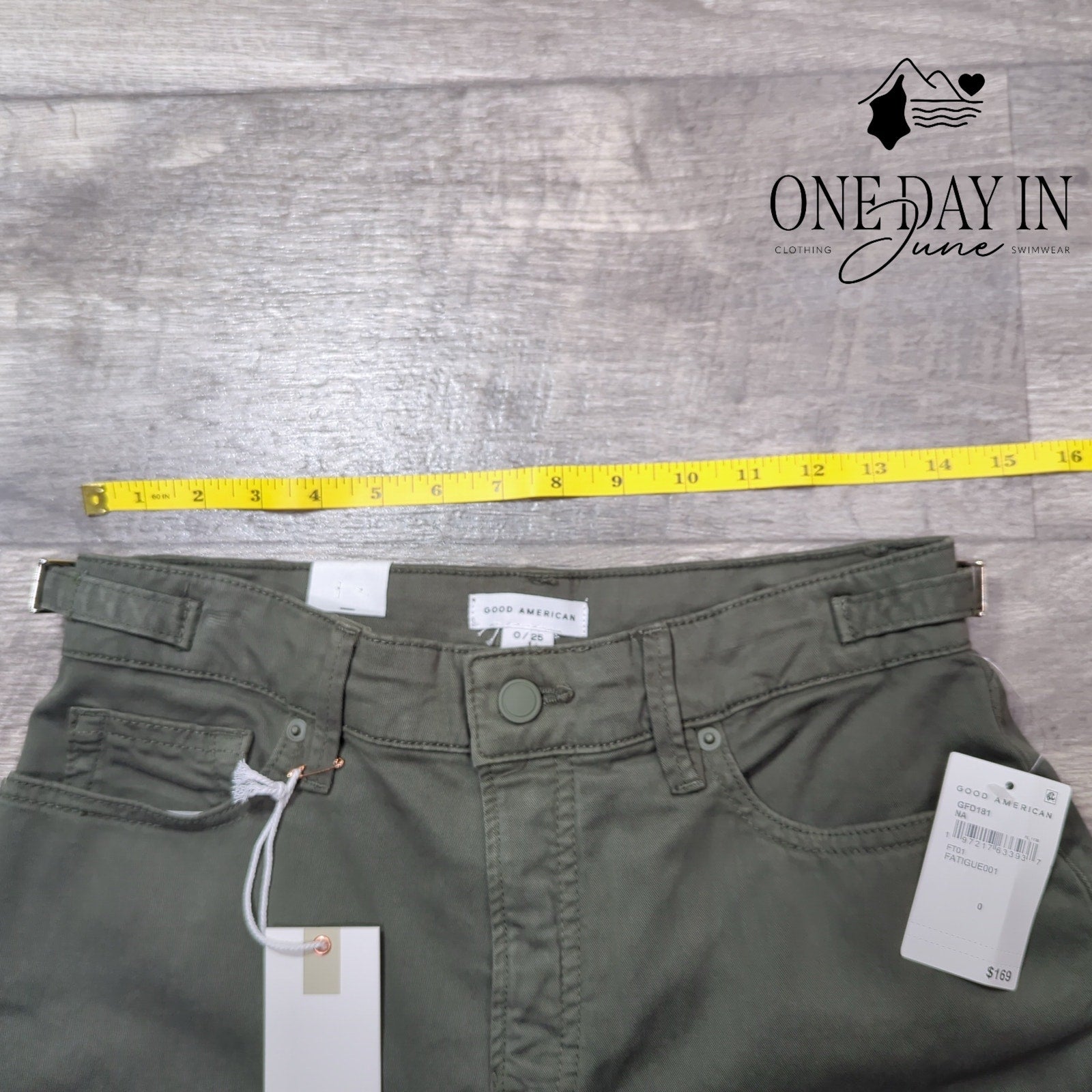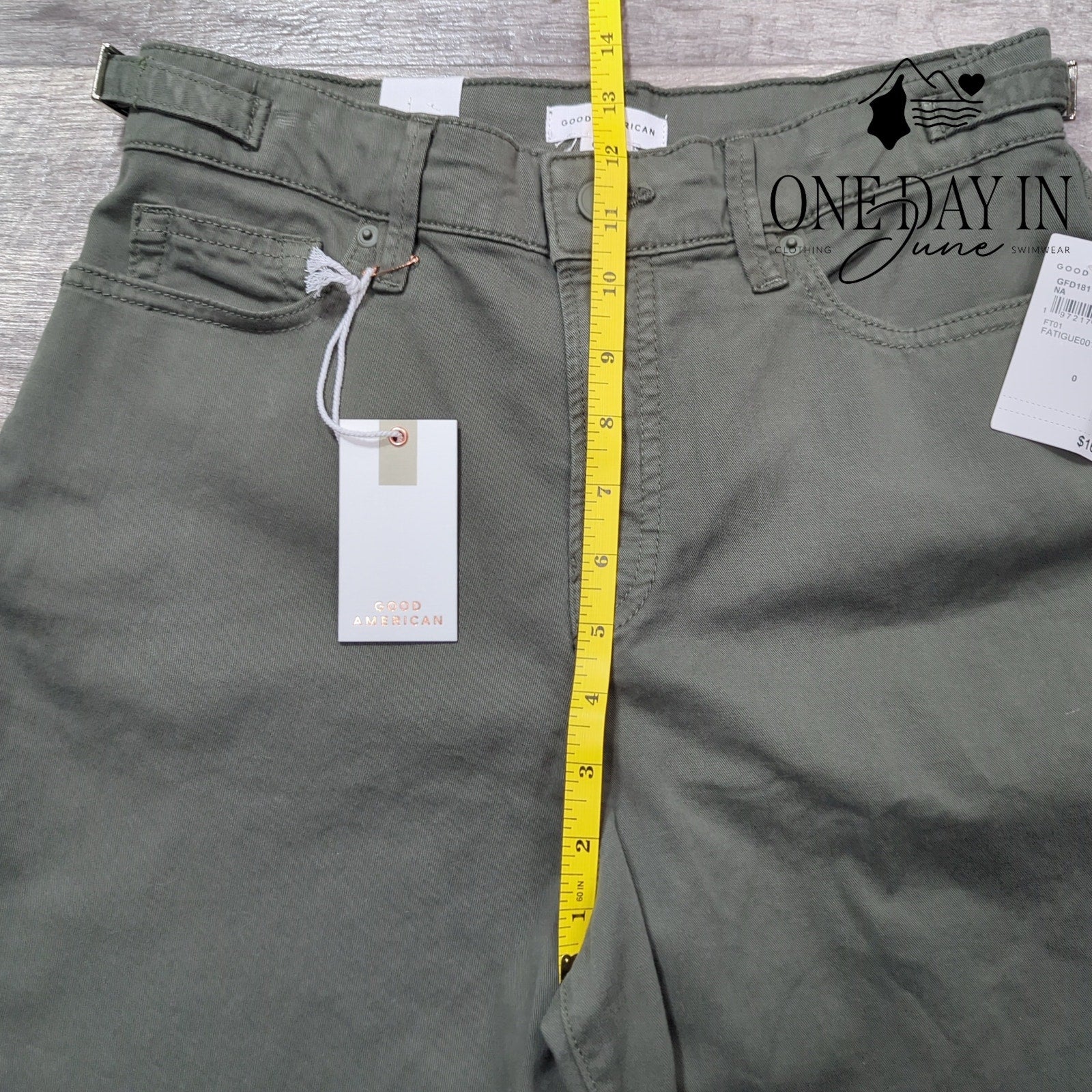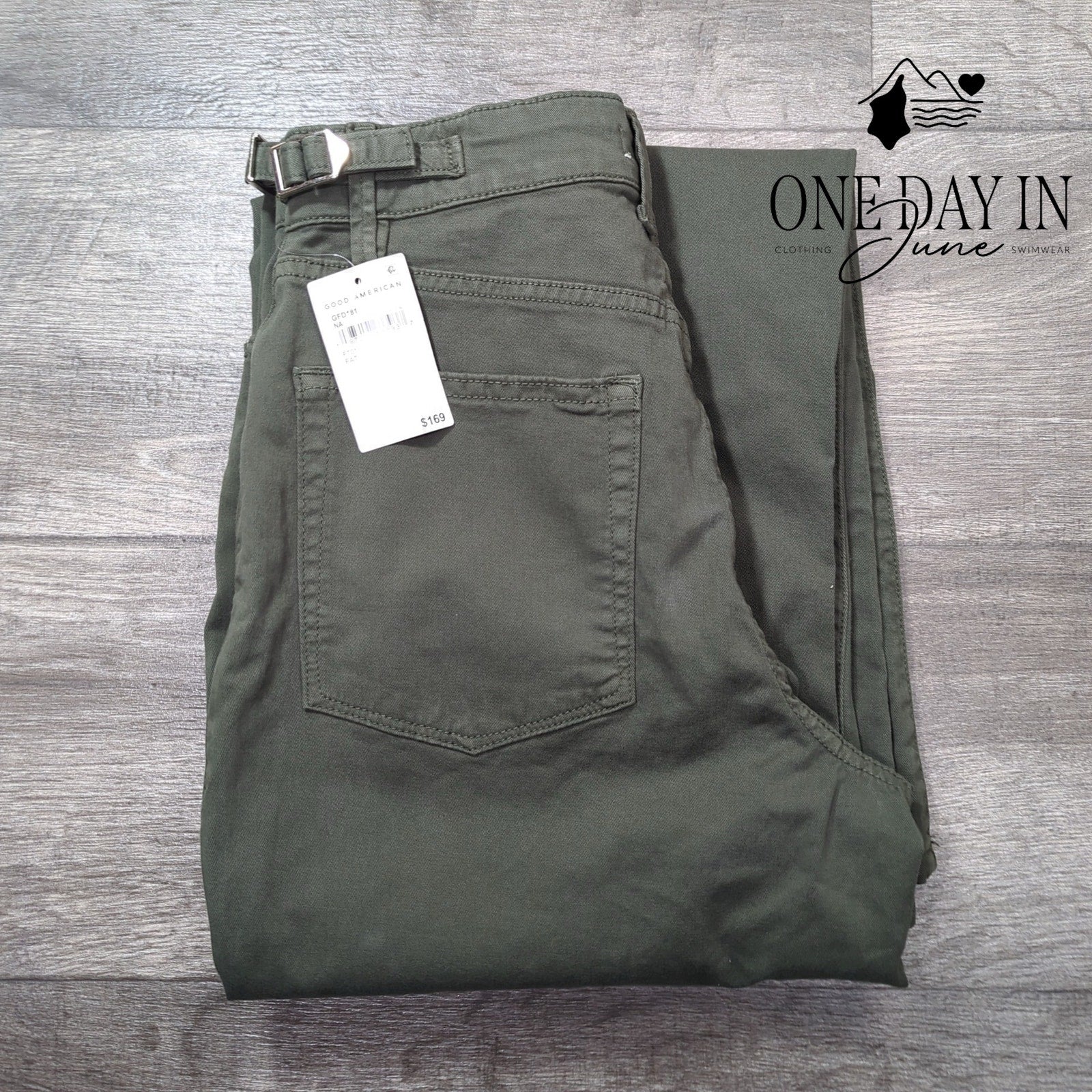 These Good American wide-leg jeans arrive in a verdant green hue, crafted from cotton with a whisper of elastane for comfort. Their relaxed silhouette and mid-rise cut evoke an effortless elegance, perfect for those who understand that true style lies not in constraint but in graceful ease. Fresh with tags, they await their debut like debutantes at a garden party.