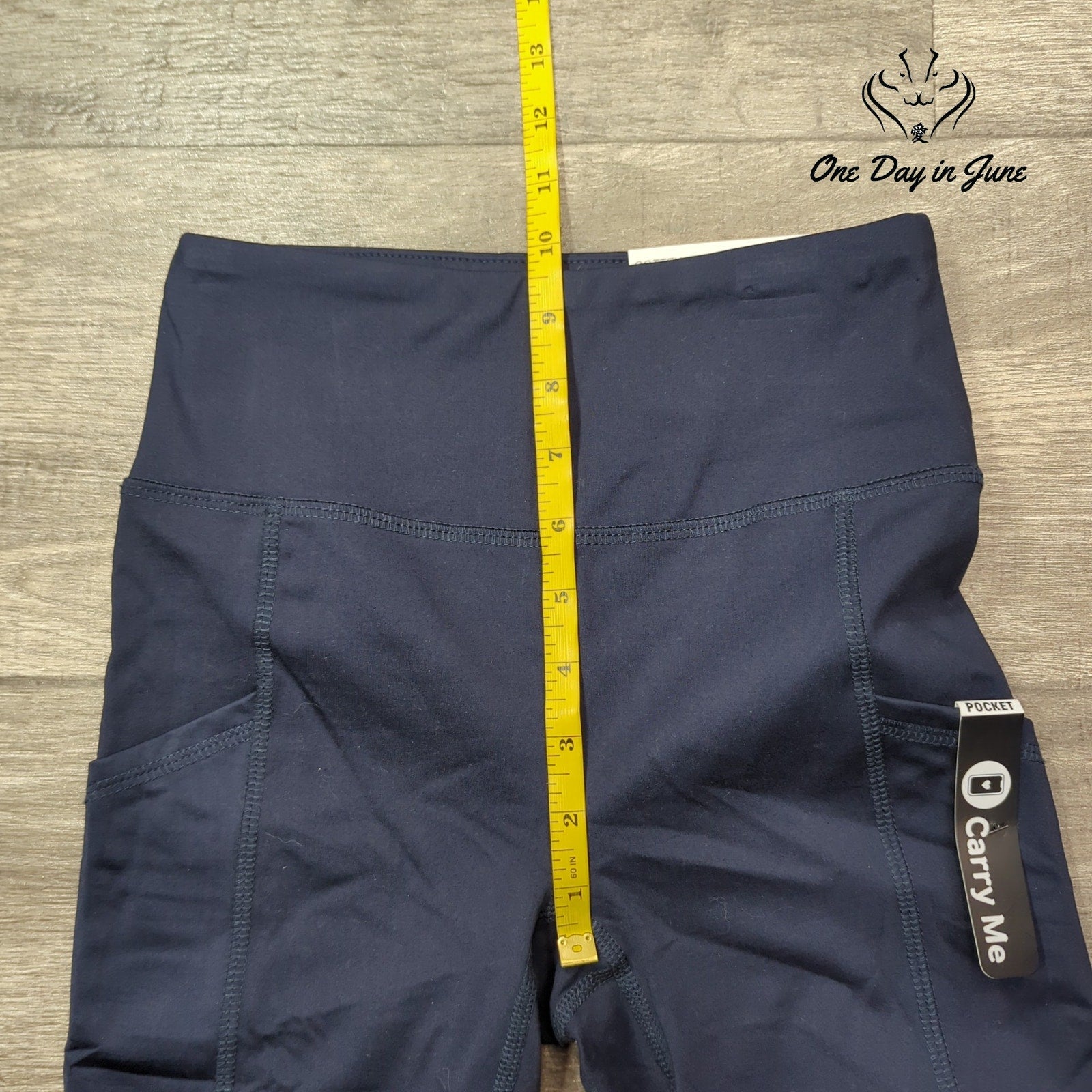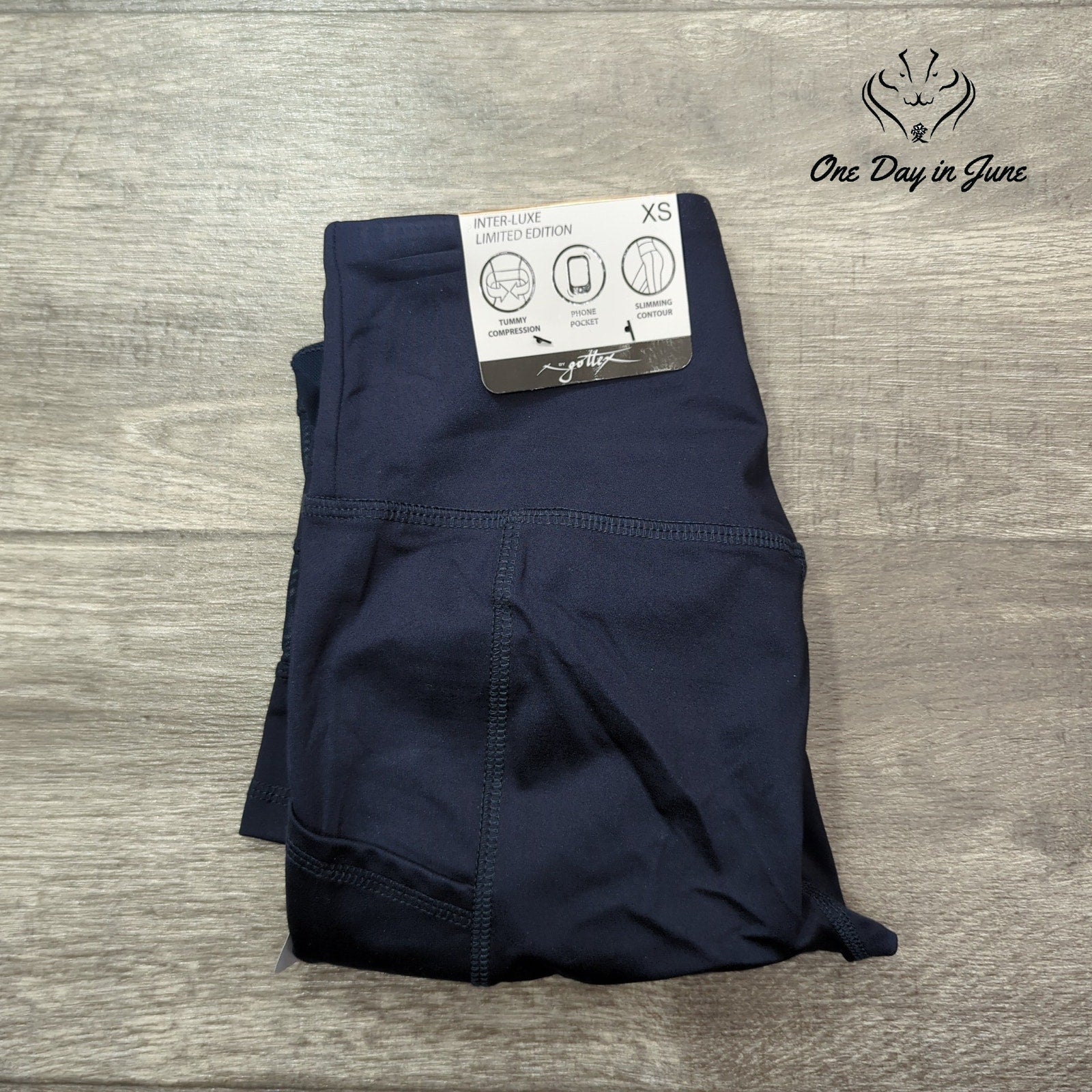 These enchanting navy capri yoga pants by Gottex promise both comfort and grace, crafted from a luxurious blend of nylon and spandex. Never worn and still bearing their original tags, they embody the perfect marriage of athletic functionality and timeless elegance.