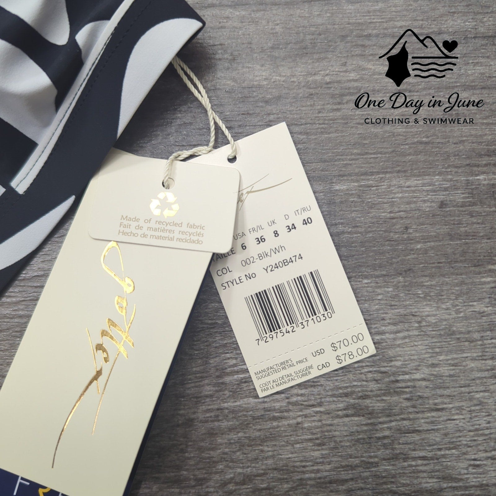 A monochrome symphony of modernity, this Gottex Free Sport Zip Crop Bikini Top captures summer's liberation with striking black and white hues. Its elegant zip front design offers a sporty allure, crafted from a luxurious polyester-spandex blend that whispers of comfort against sun-kissed skin—a splendid treasure for those who chase the golden hours by azure waters.