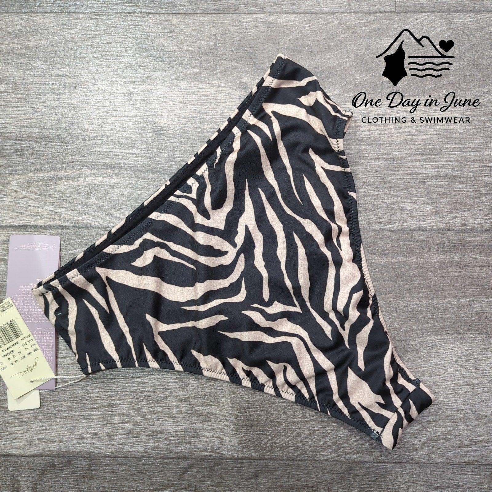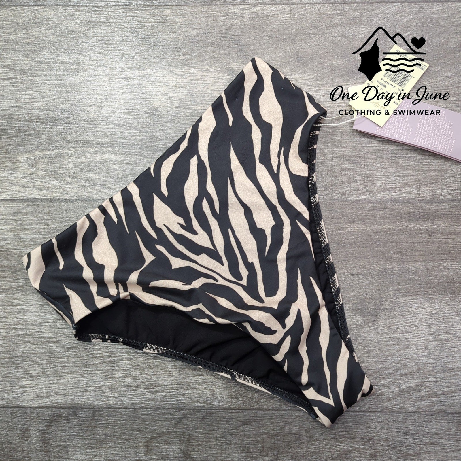 These bottoms are quite the sight, with colors black and tan so bright! High-waisted wonder, stretchy and new, perfect for swimming adventures with you!