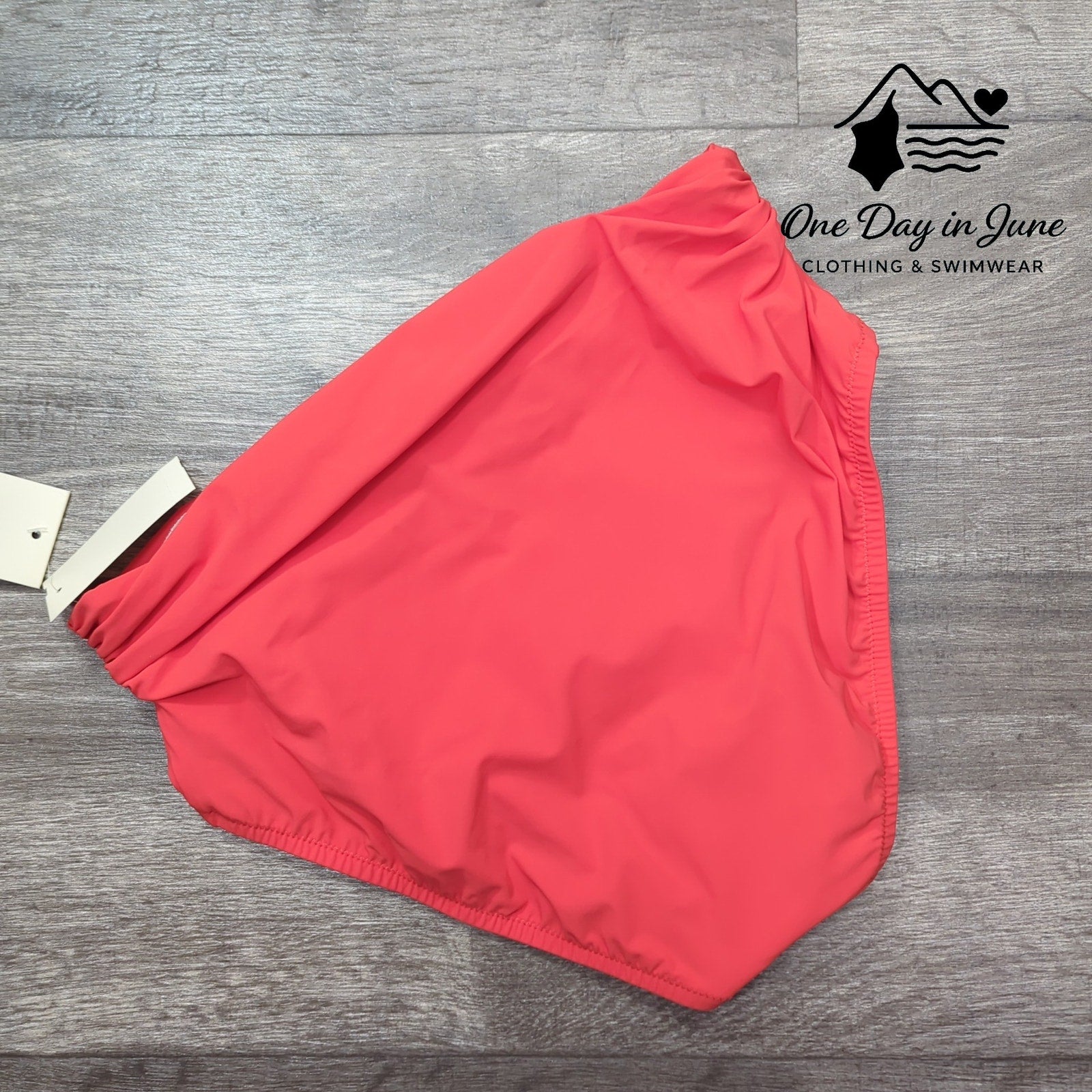 Indulge in the luxury of this Gottex Profile ruched bikini bottom, a most becoming orange hue to flatter the feminine form. The craftsmanship is impeccable, with artful ruching that provides both elegant shaping and modest coverage, while the blend of polyester and elastane ensures comfort whether one is promenading along the shoreline or reclining beneath a parasol.