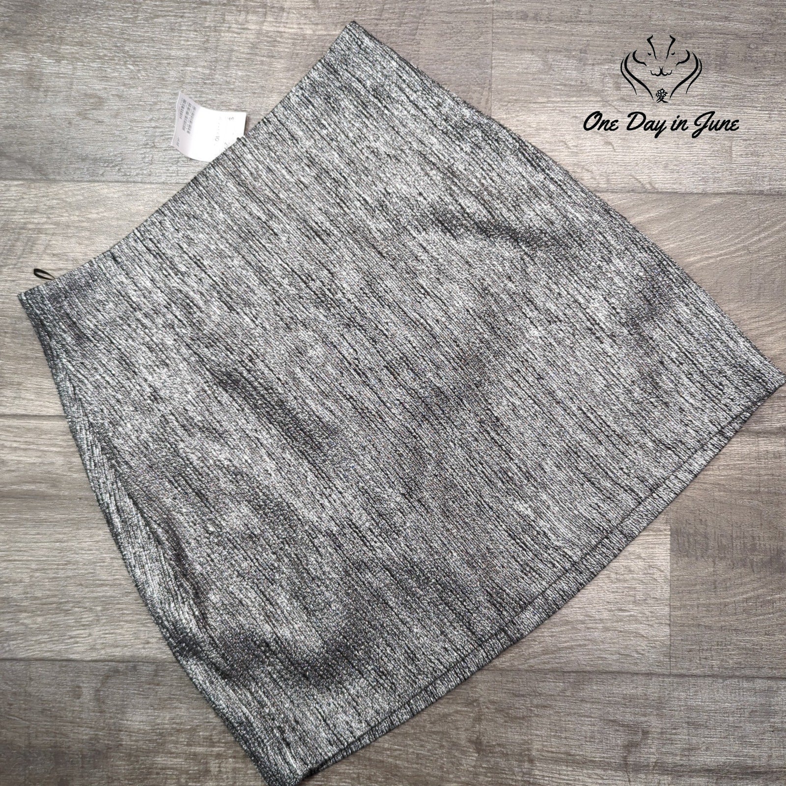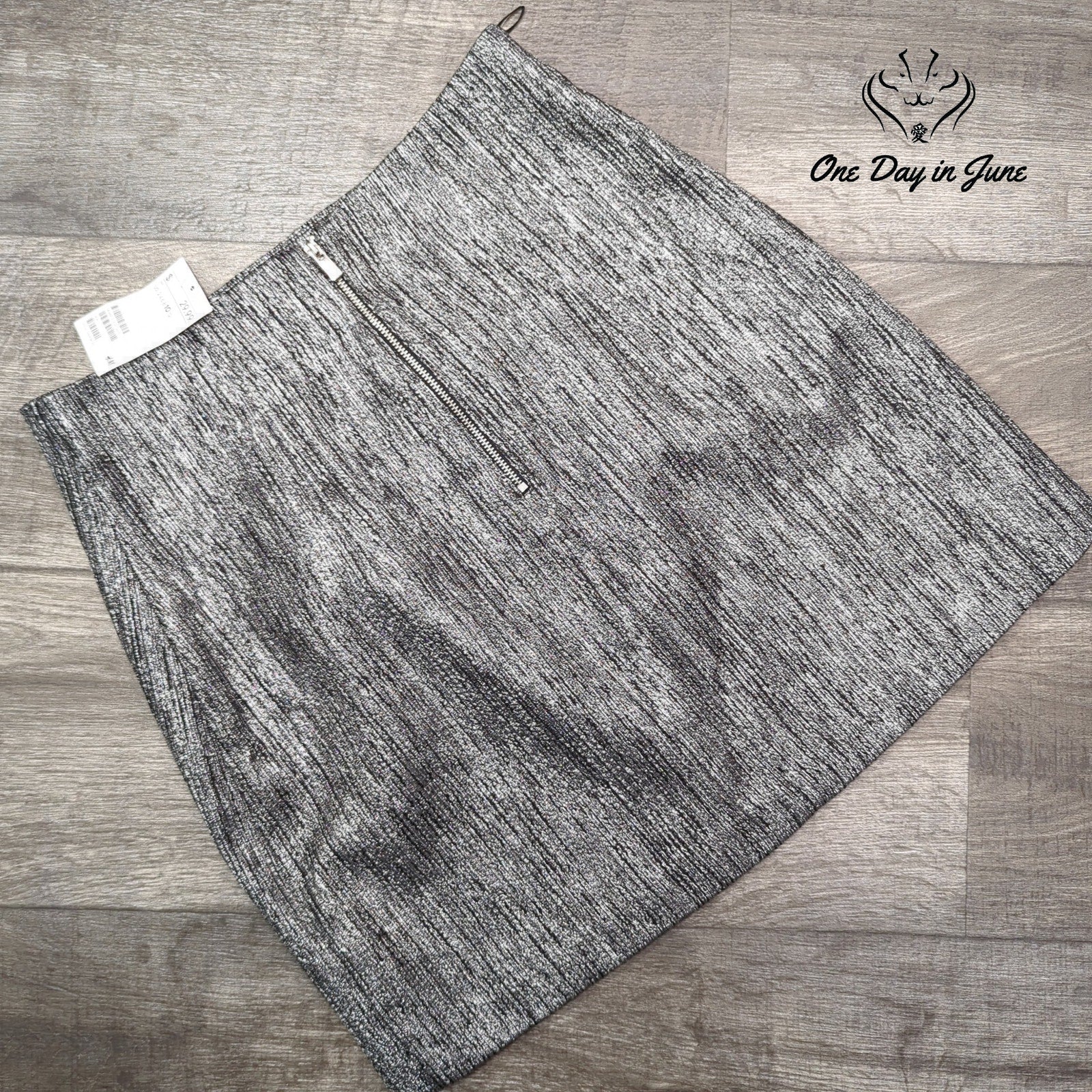 Shimmering like starlight on a moonlit lake, this metallic mini skirt from H&M captures the essence of modern glamour. Its sleek silhouette and lustrous grey-silver hue promise to transform any ensemble into a dazzling spectacle, evoking the decadent spirit of a bygone era while remaining firmly rooted in contemporary chic.