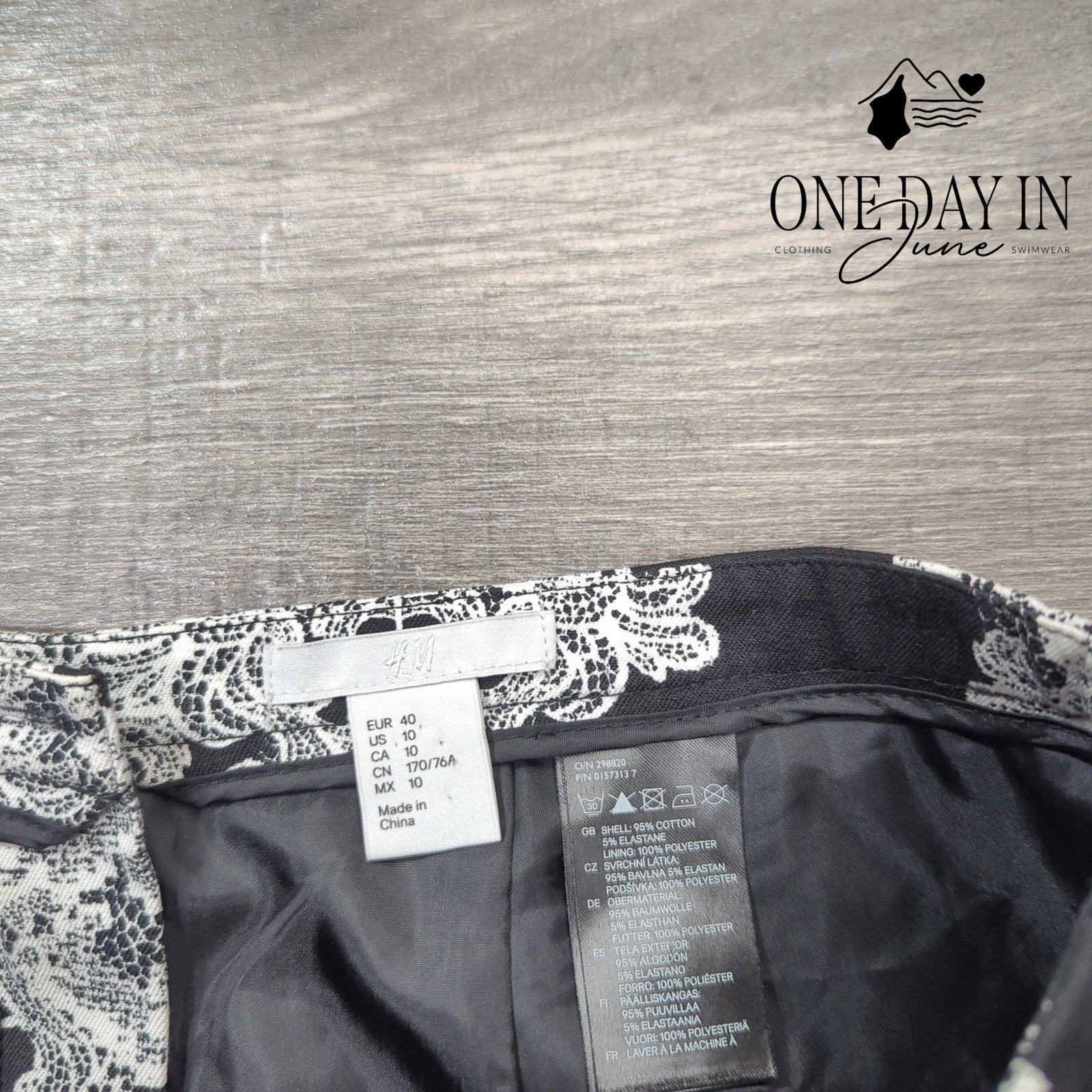 A most elegant pencil skirt in a classic black and white palette, perfectly suited for the lady who values both style and comfort in her daily pursuits. The cotton construction with a hint of elastane ensures a flattering silhouette, whilst the polyester lining provides the utmost propriety and ease of wear. In like new condition, this piece from H&M shall prove a versatile addition to any discerning woman's wardrobe.