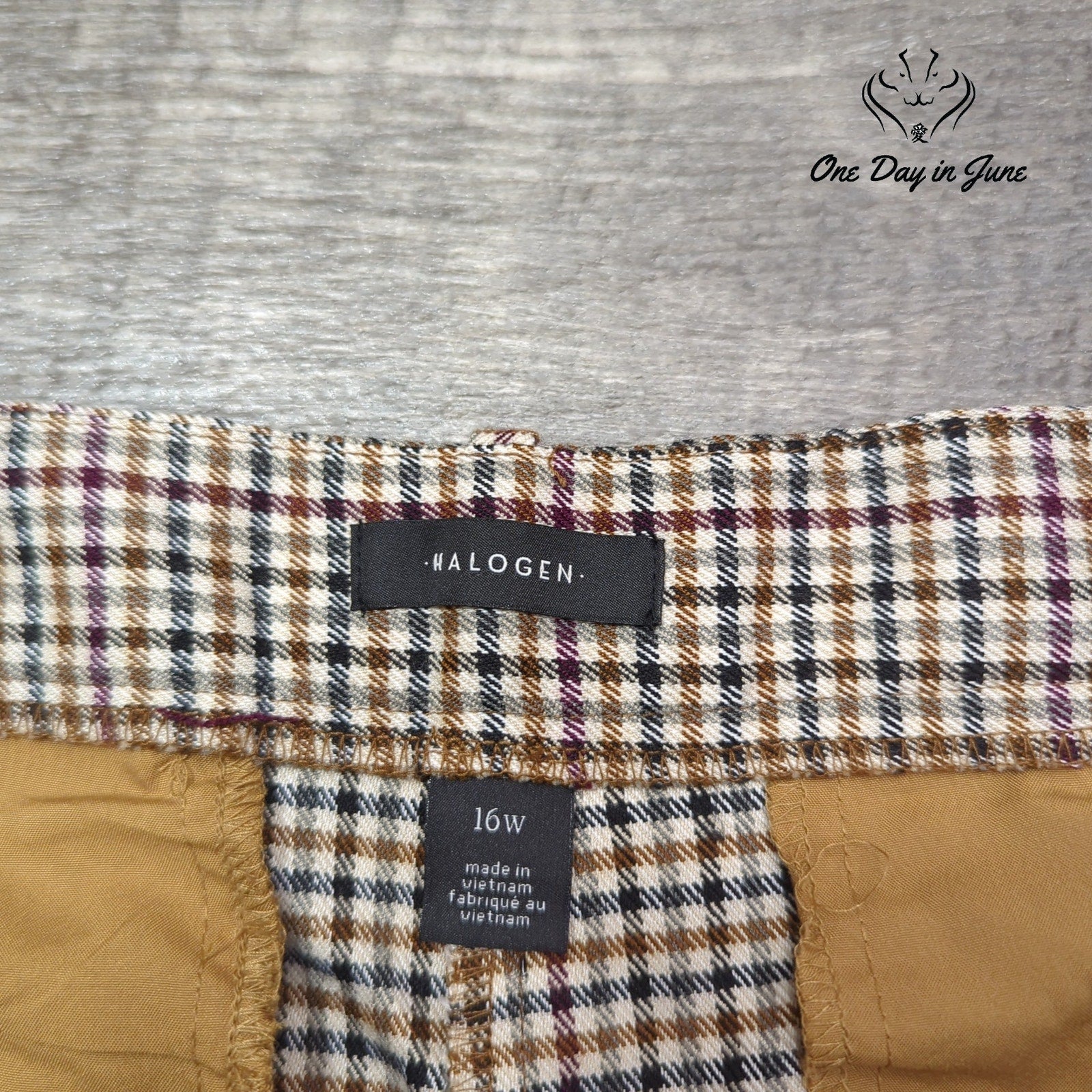 Behold, a pair of straight-leg trousers most becoming to the fuller figure, adorned in a delightful array of hues. Crafted with the utmost care from a blend of polyester, rayon, and a touch of spandex, these Halogen pants offer both comfort and elegance for the discerning lady. Though never worn, they stand ready to grace the wardrobe of she who seeks a garment of quality and style.