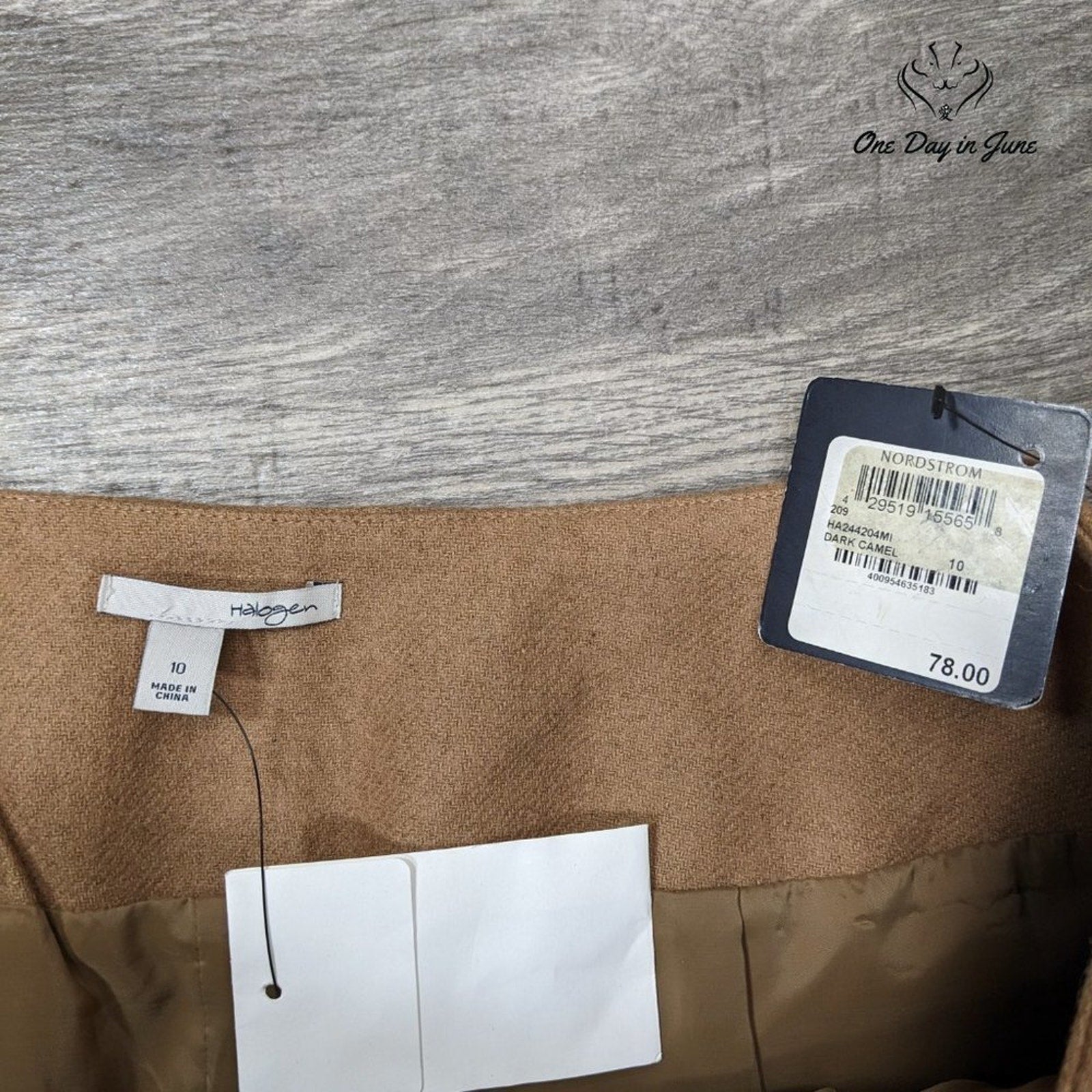 Stay chic and stylish with this brand new Halogen Wool Pocketed Mini Skirt. Crafted from a blend of wool, polyester, and rayon, this brown skirt boasts a versatile design paired with practical pockets for a fashionable yet functional addition to your wardrobe.