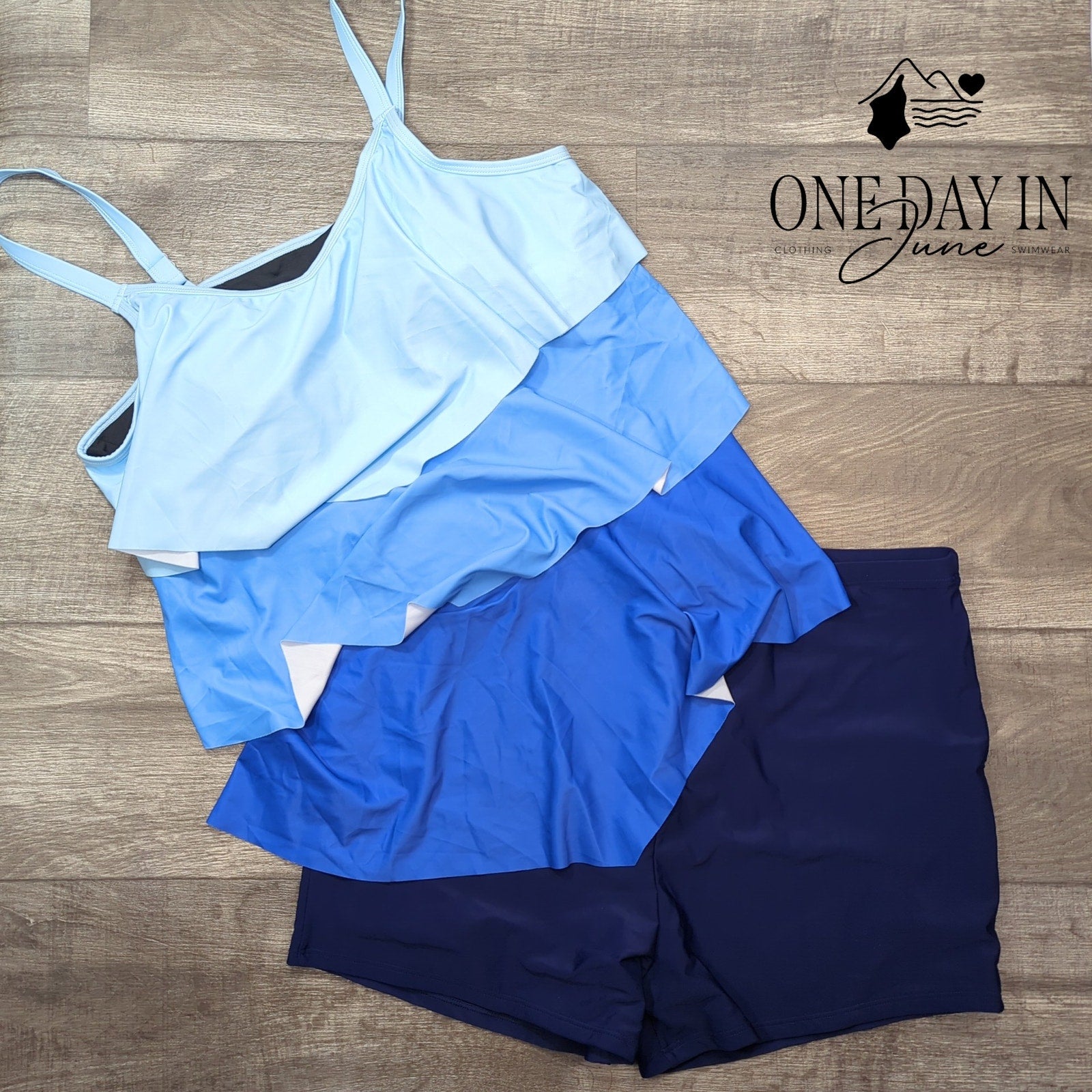This charming blue tankini set from Hanna Nikole presents the perfect union of comfort and elegance for the discerning lady's aquatic pursuits. The boyshort design offers modest coverage while maintaining a most flattering silhouette, crafted from a delightful blend of polyester and spandex that moves gracefully with one's form. A most sensible choice for those summer days when propriety and style must walk hand in hand by the water's edge.