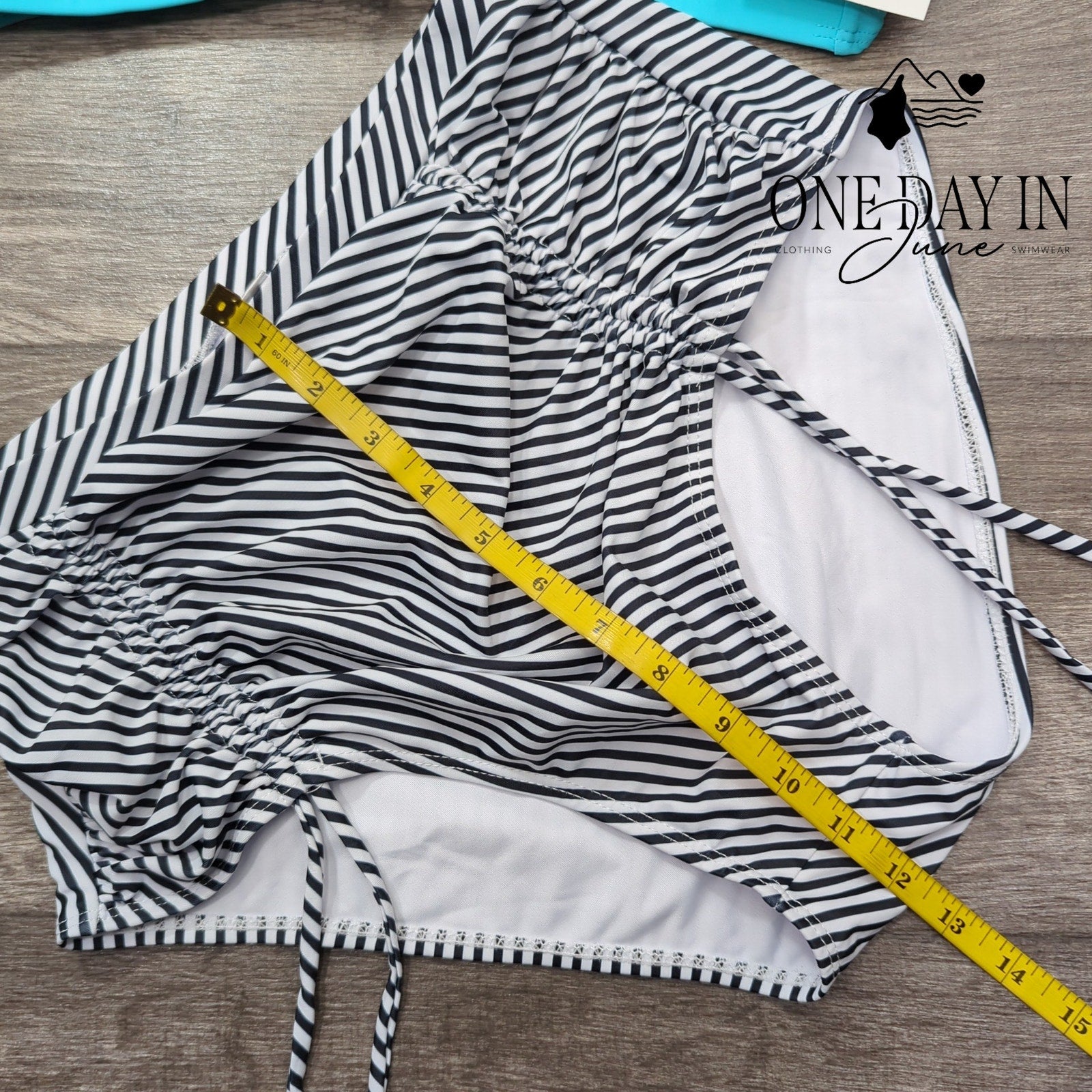 This exquisite Hanna Nikole bikini captures the essence of poolside glamour with its striking cross-front silhouette and sophisticated high-waist design. The enchanting teal, black, and white palette evokes summer's most luxurious moments, while the flattering cut promises to make every swim a celebration of confidence. Crafted from a sumptuous polyester and spandex blend, this piece transforms any beach into your personal Riviera.