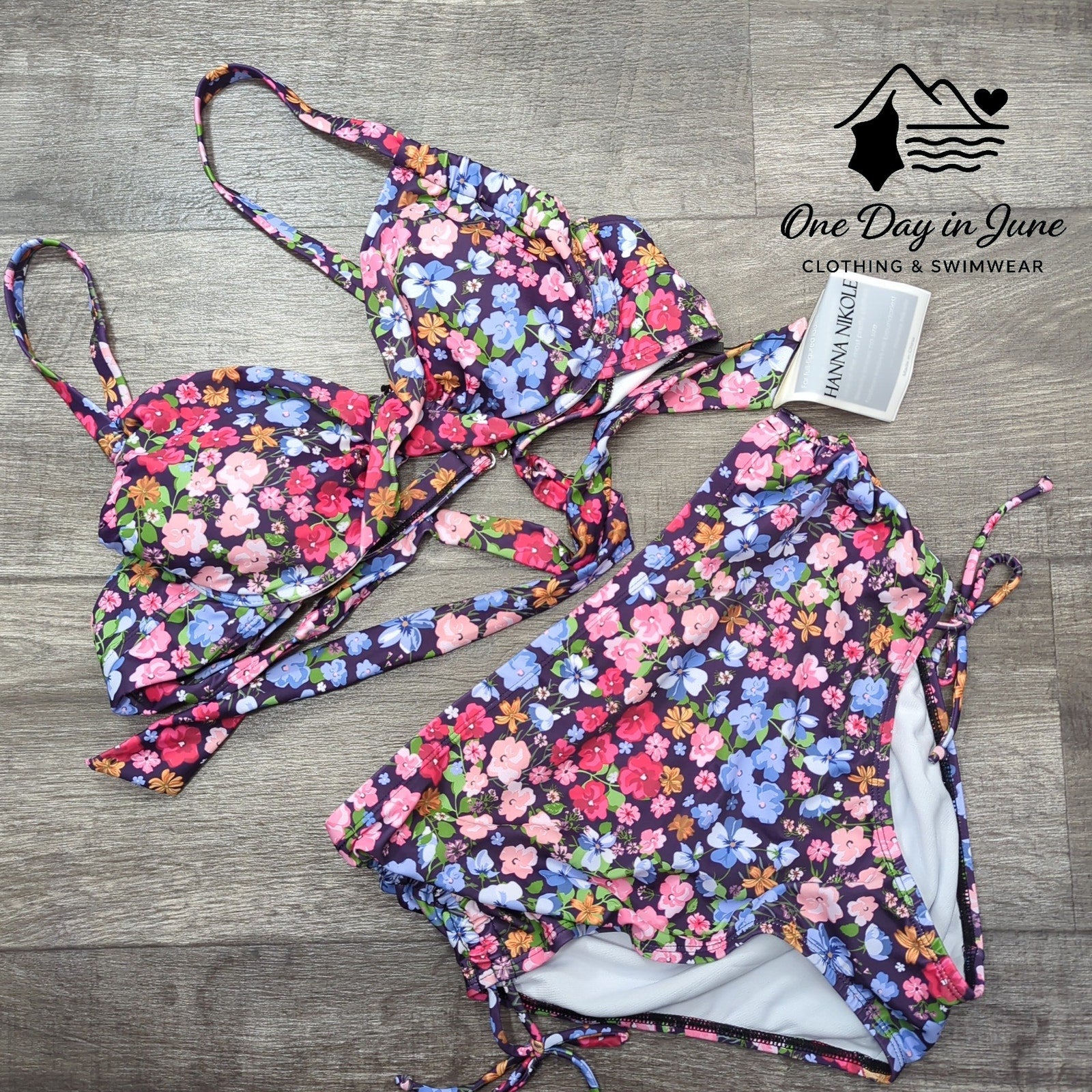 Hanna Nikole Plus Size Cross Front High Waist Floral Bikini Swimsuit Size 12W