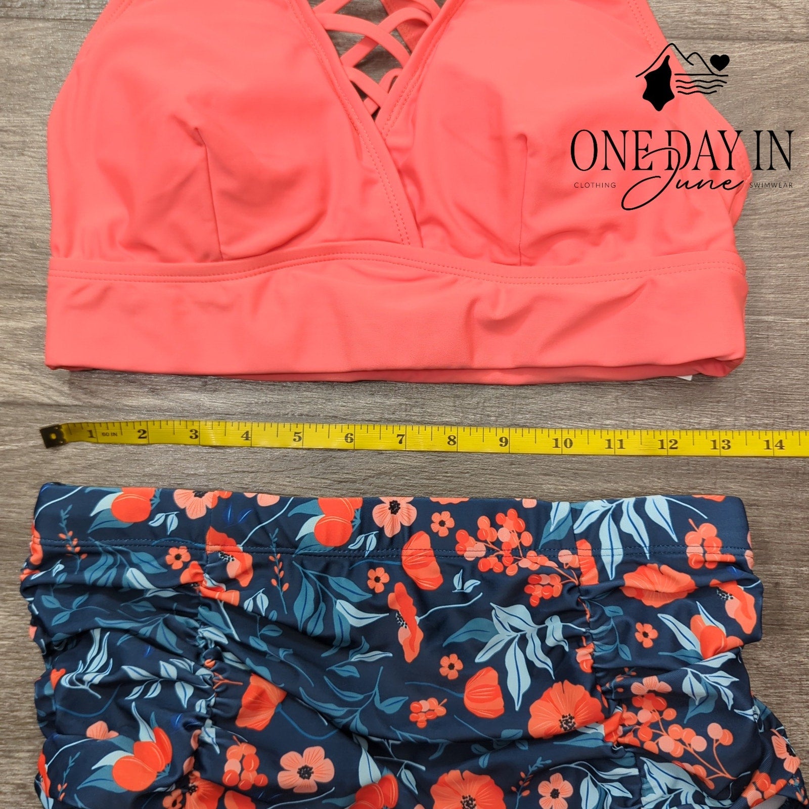 Hanna Nikole Plus Size High Waist Ruched Bikini Swimsuit Size 12W