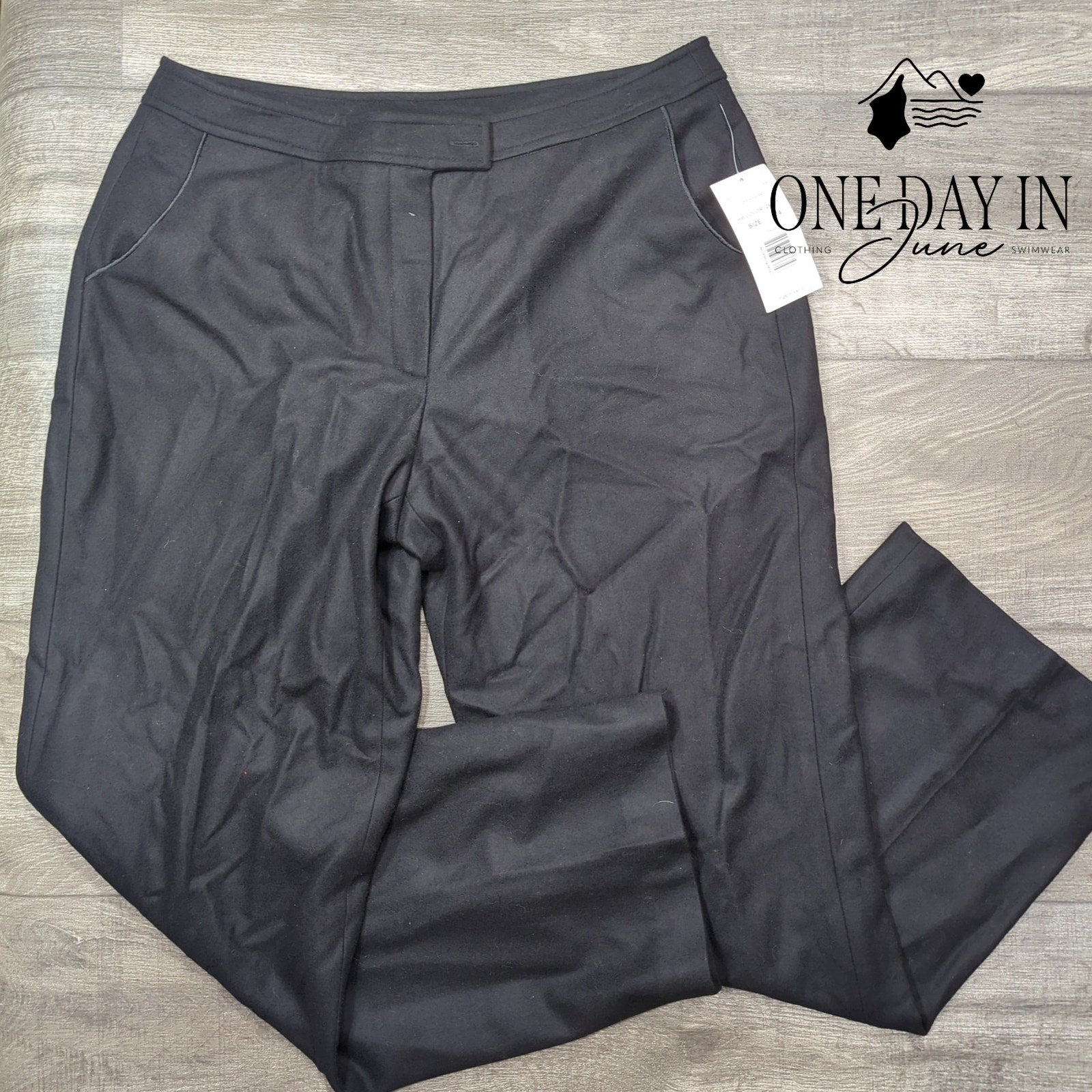 These sleek black pants are quite a sight, with wool so fine they feel just right! Straight-legged beauties, brand new and neat, they'll make your wardrobe feel complete!