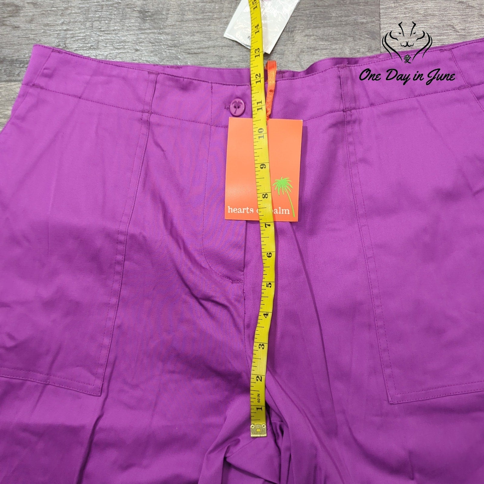 Elegantly tailored purple capri pants, crafted from a luxuriously soft cotton blend with just a whisper of stretch for effortless movement. These pristine Hearts of Palm pants, never worn and bearing their original tags, promise to bring a dash of casual sophistication to any summer afternoon.