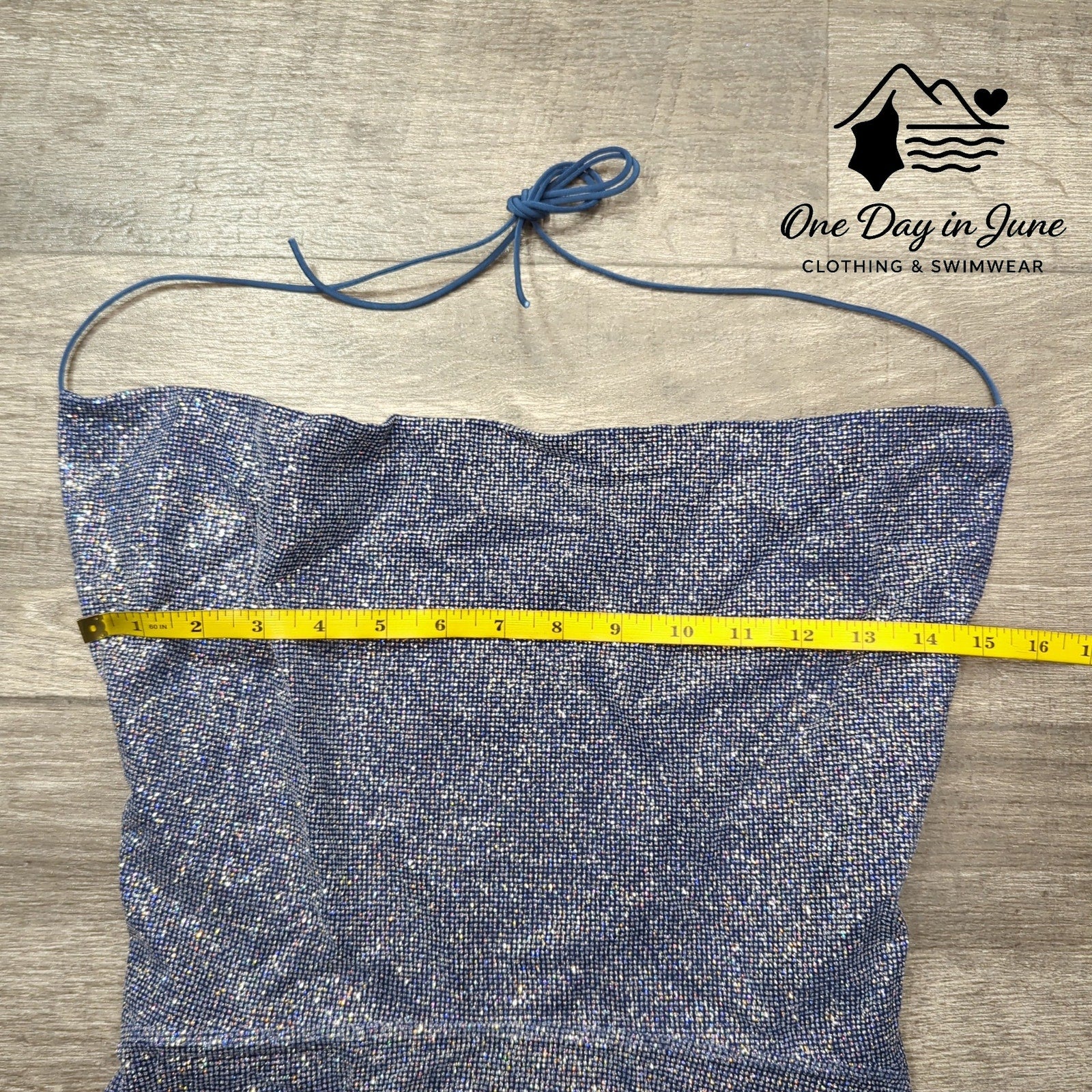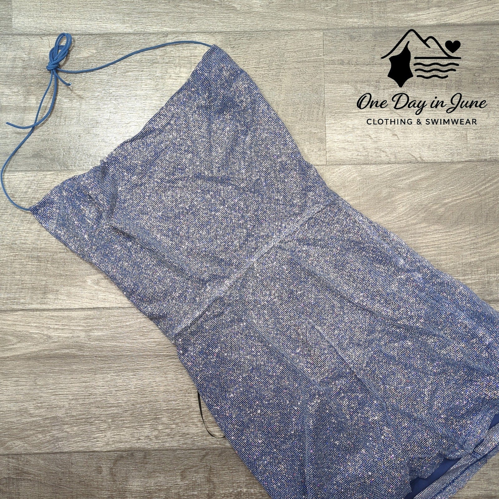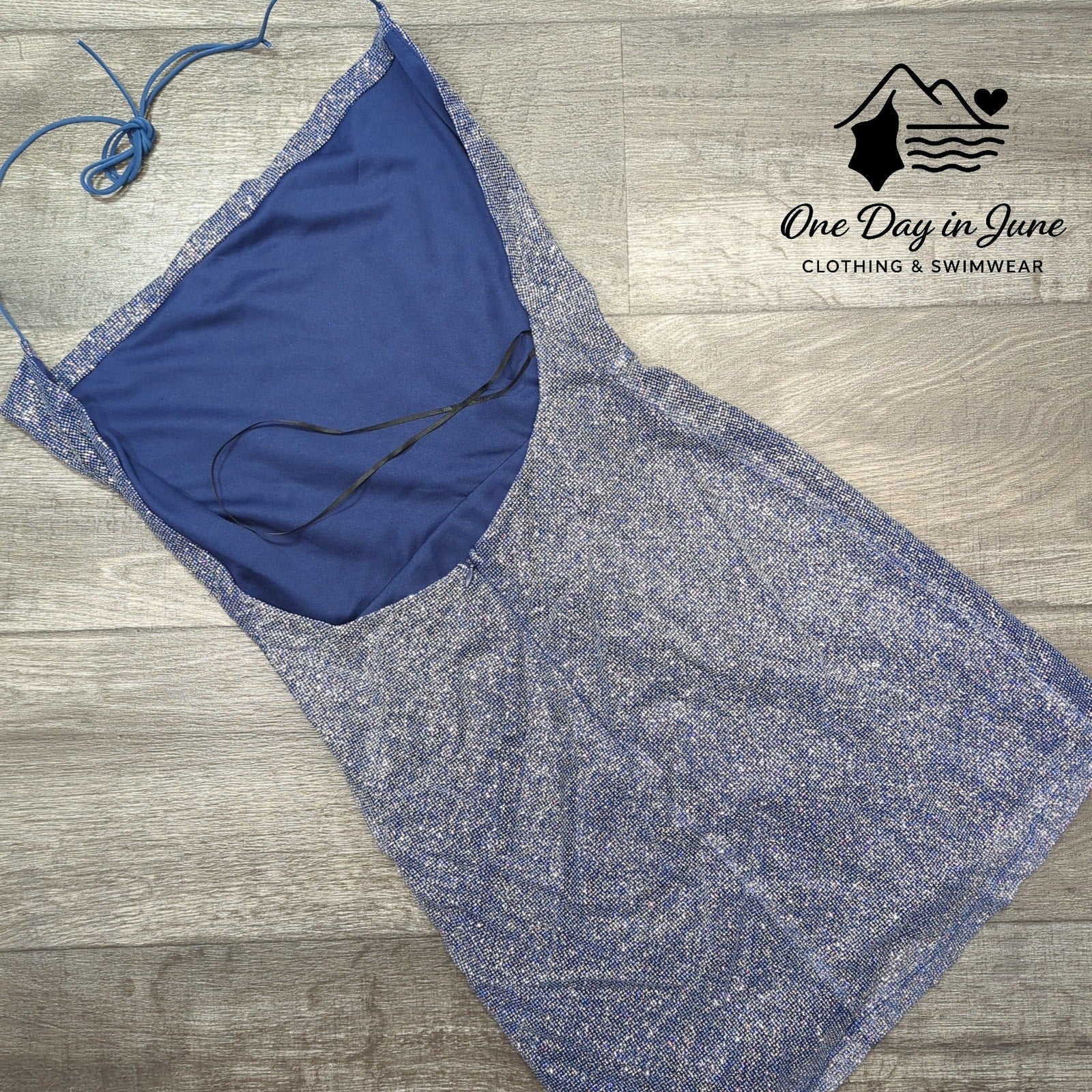 With a shimmer and shine that's bright as can be, this blue Hello Molly mini dress is a sight to see! The spaghetti straps and glittery design will make you twinkle from dusk till dawn, perfect for parties where fun lingers on.