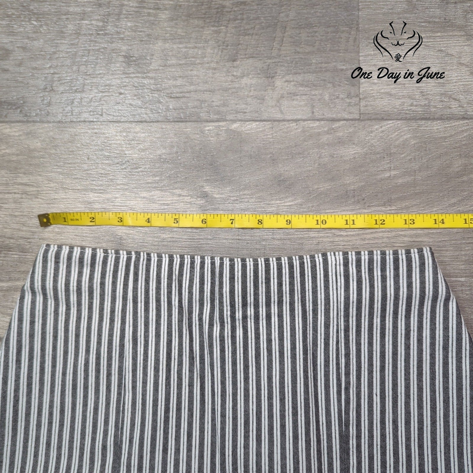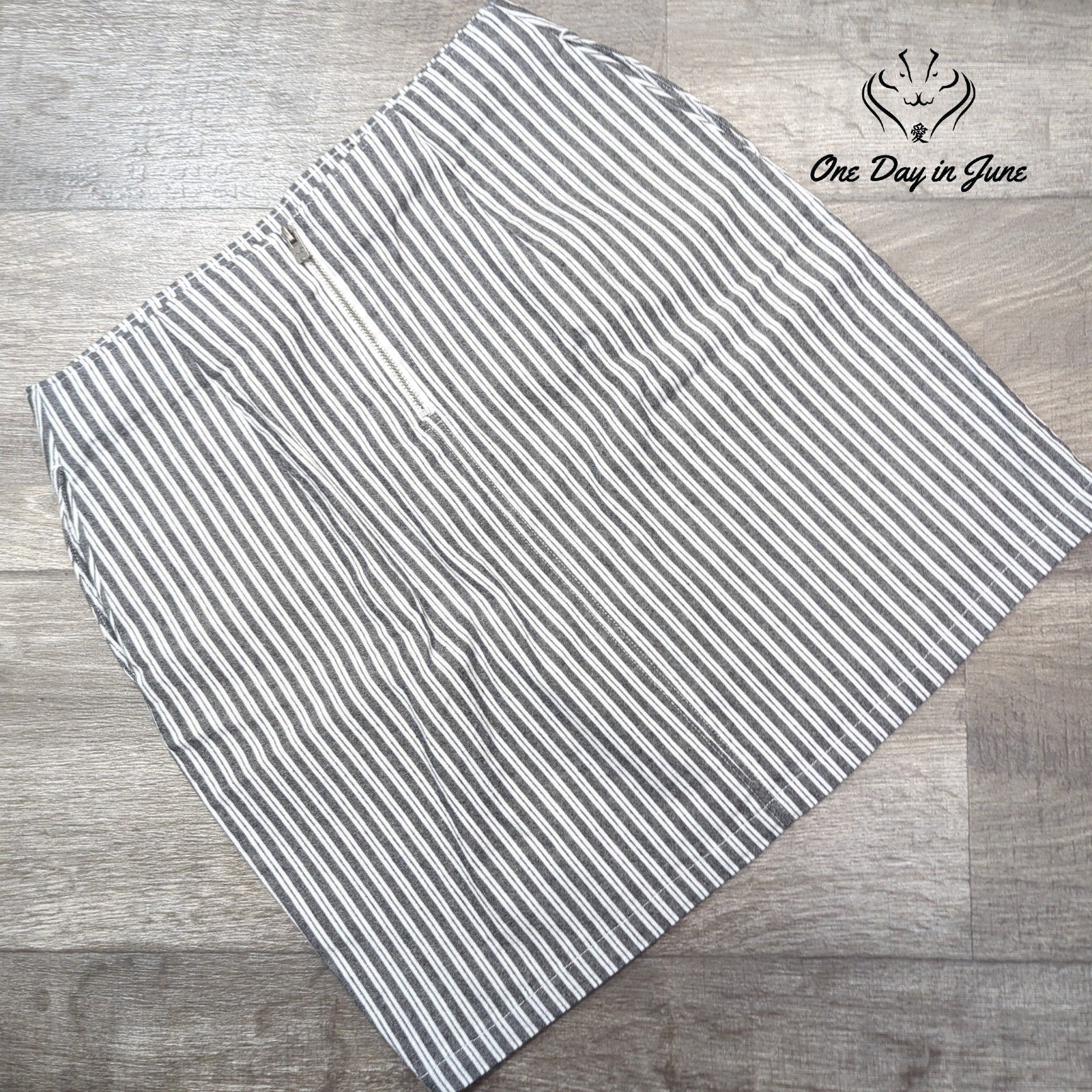 With a swish and a swirl in a pattern so light, this ultra high-rise mini skirt is a grey and white delight! A cotton-blend beauty in like-new condition rare, wear it high on your waist with a confident flair!