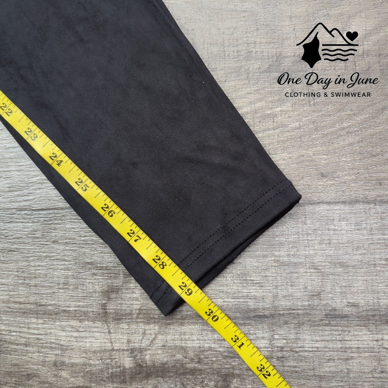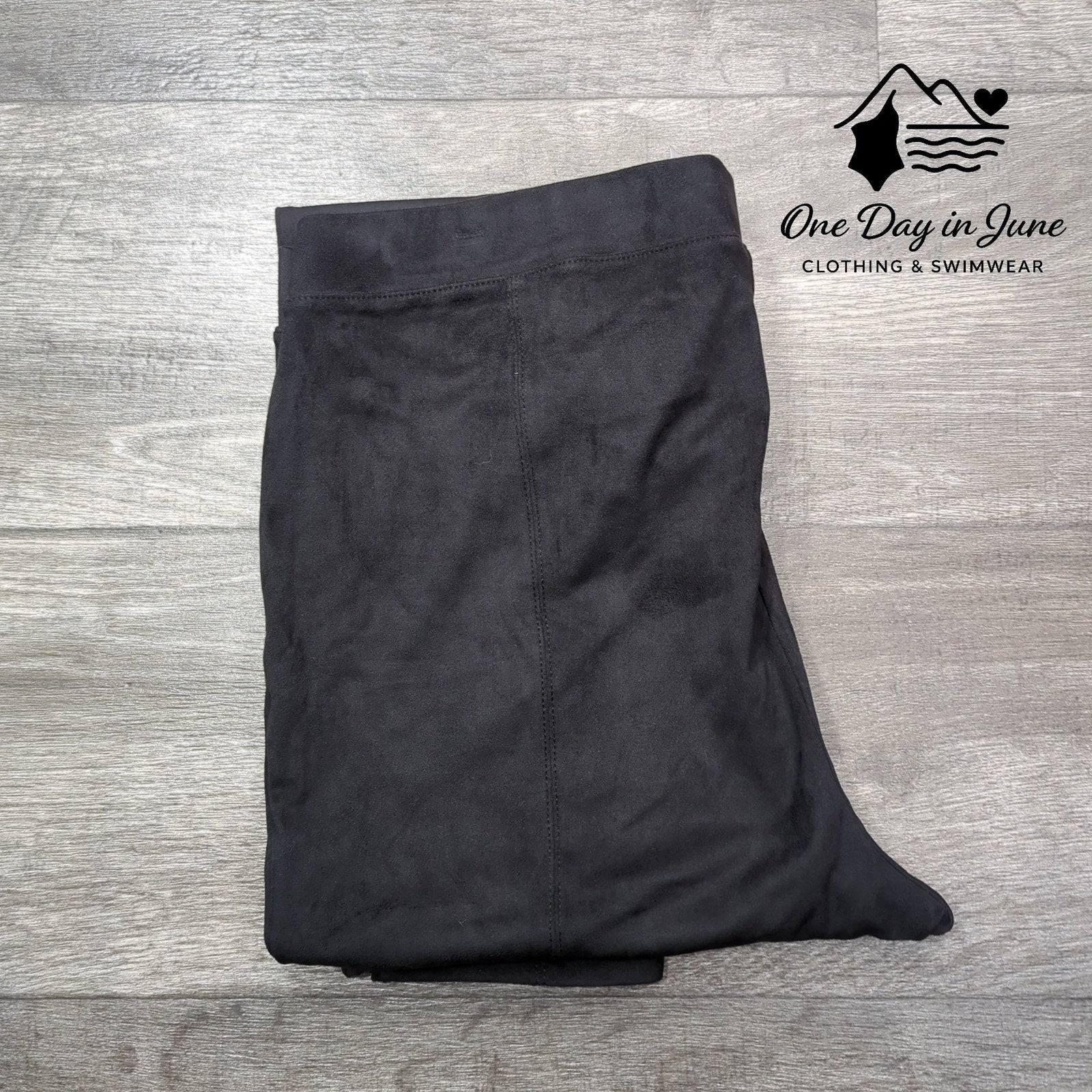 Buckle up, brave voyagers of the fashion realm, for these ultra faux suede leggings from Hue are about to catapult your wardrobe into a dimension where comfort meets savage style in a twisted tango of textile ecstasy. The deep black fabric clings to your legs like the shadows of midnight desert highways, creating a silhouette so dangerously sleek that ordinary mortals will avert their gaze as you strut past in polyester-spandex glory.