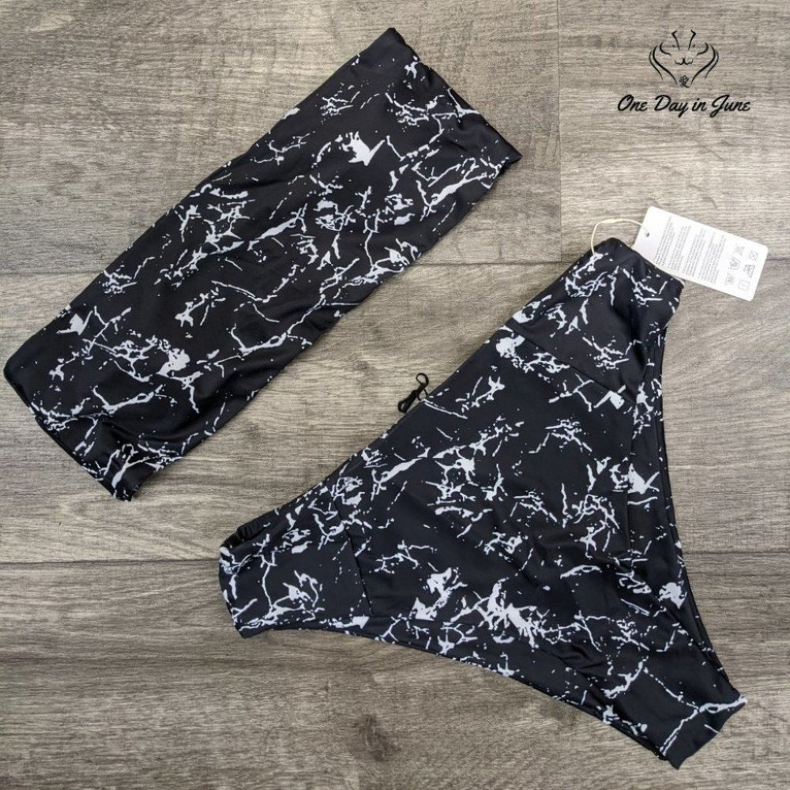 Tags: #MarbleBikini #WomensSwimwear #BlackBandeau