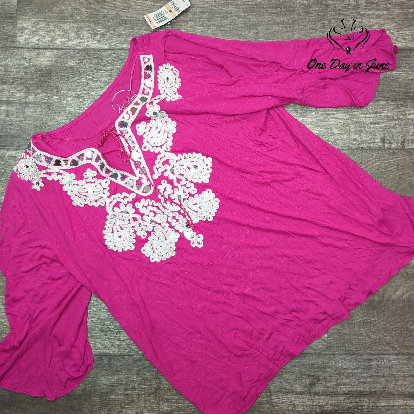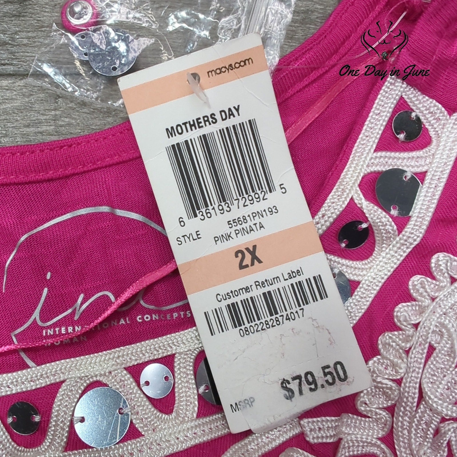 INC International Concepts Long Sleeve Sequin Accent Top Size 2X
