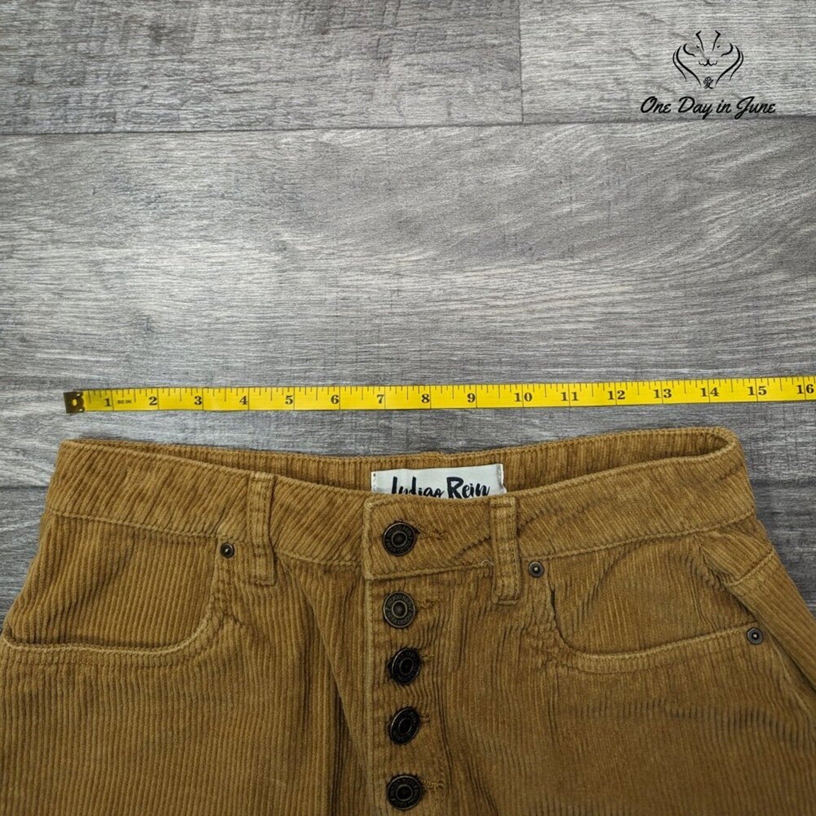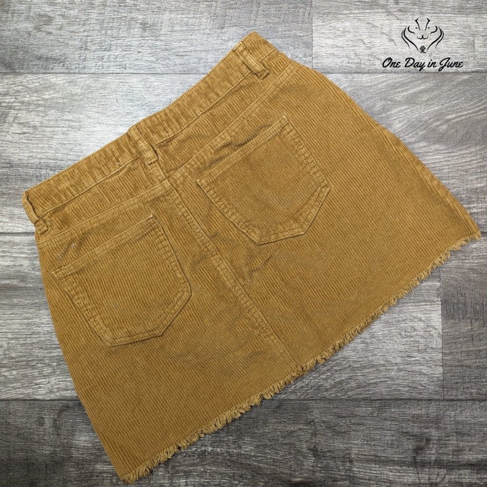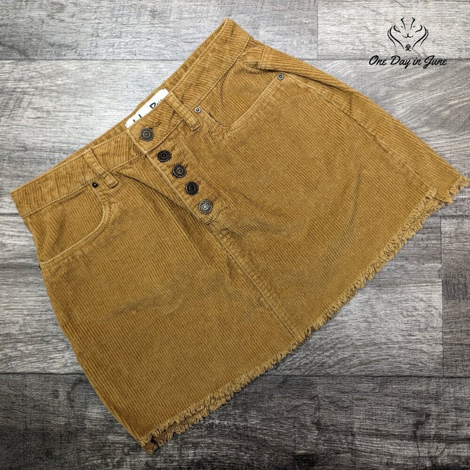 Presenting an exquisite Indigo Rein Corduroy Mini Skirt in a charming shade of brown. This like-new cotton masterpiece, designed for the ladies, exudes an air of casual elegance and unquestionable style. It's a delightful addition to any discerning woman's wardrobe, promising a touch of regency charm with a modern twist.