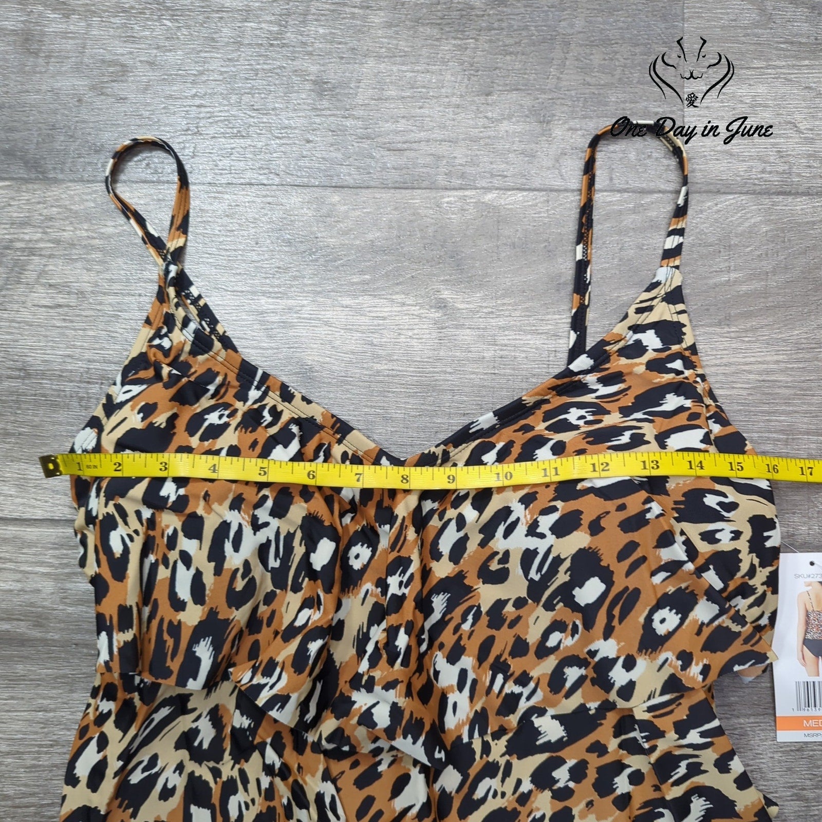 Into The Bleu Leopard Flounce Tankini Top Size M