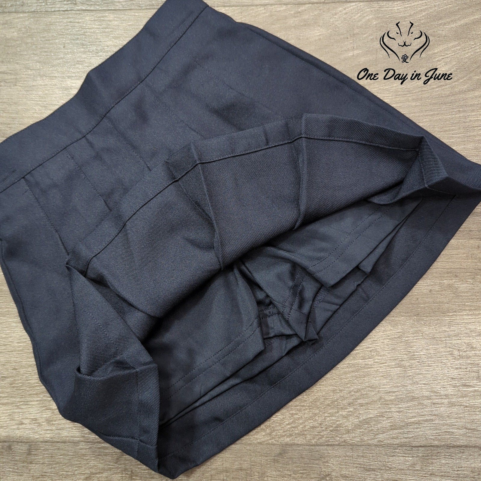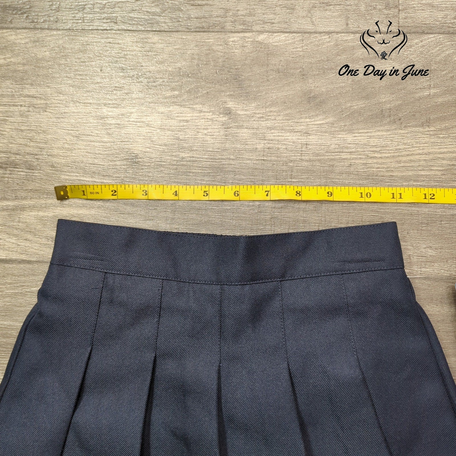 A most becoming skort from the esteemed house of Izod, fashioned in a dignified navy hue and lined throughout for utmost comfort and propriety. This charming garment, still bearing its original credentials, combines the grace of a skirt with the practicality of shorts beneath, making it an excellent choice for the young lady's daily scholarly pursuits.