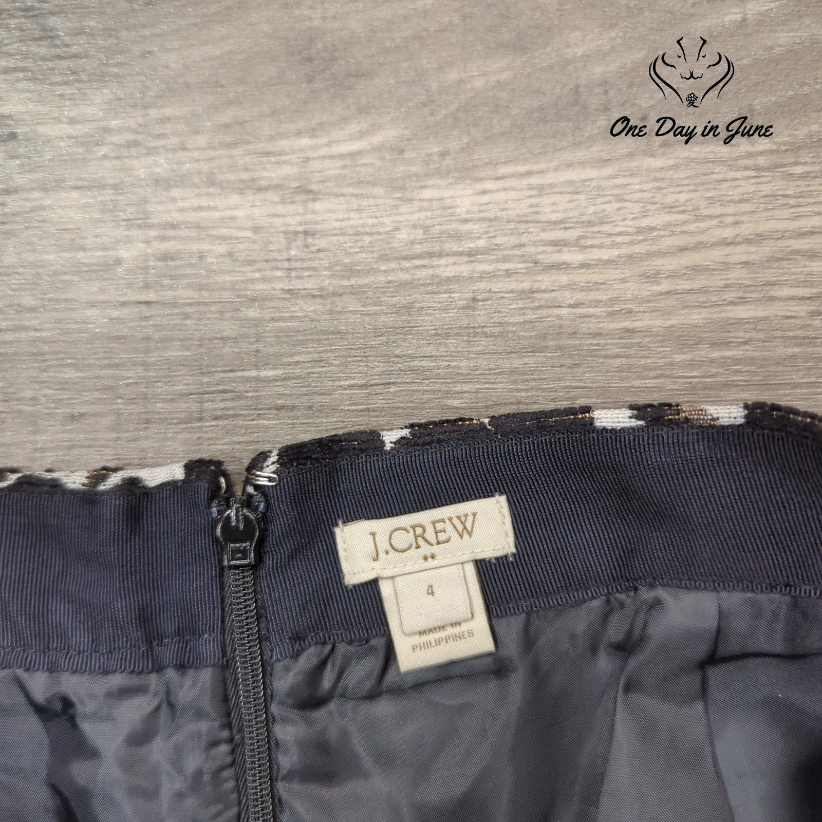 A most elegant pencil skirt from the esteemed house of J.Crew, crafted with a becoming blend of viscose and polyester, and adorned with a fine polyester lining for the utmost comfort and discretion. This noir-hued garment remains in splendid condition, having scarcely graced its previous owner's wardrobe, and shall prove a most practical addition to any lady's collection of daily wear.