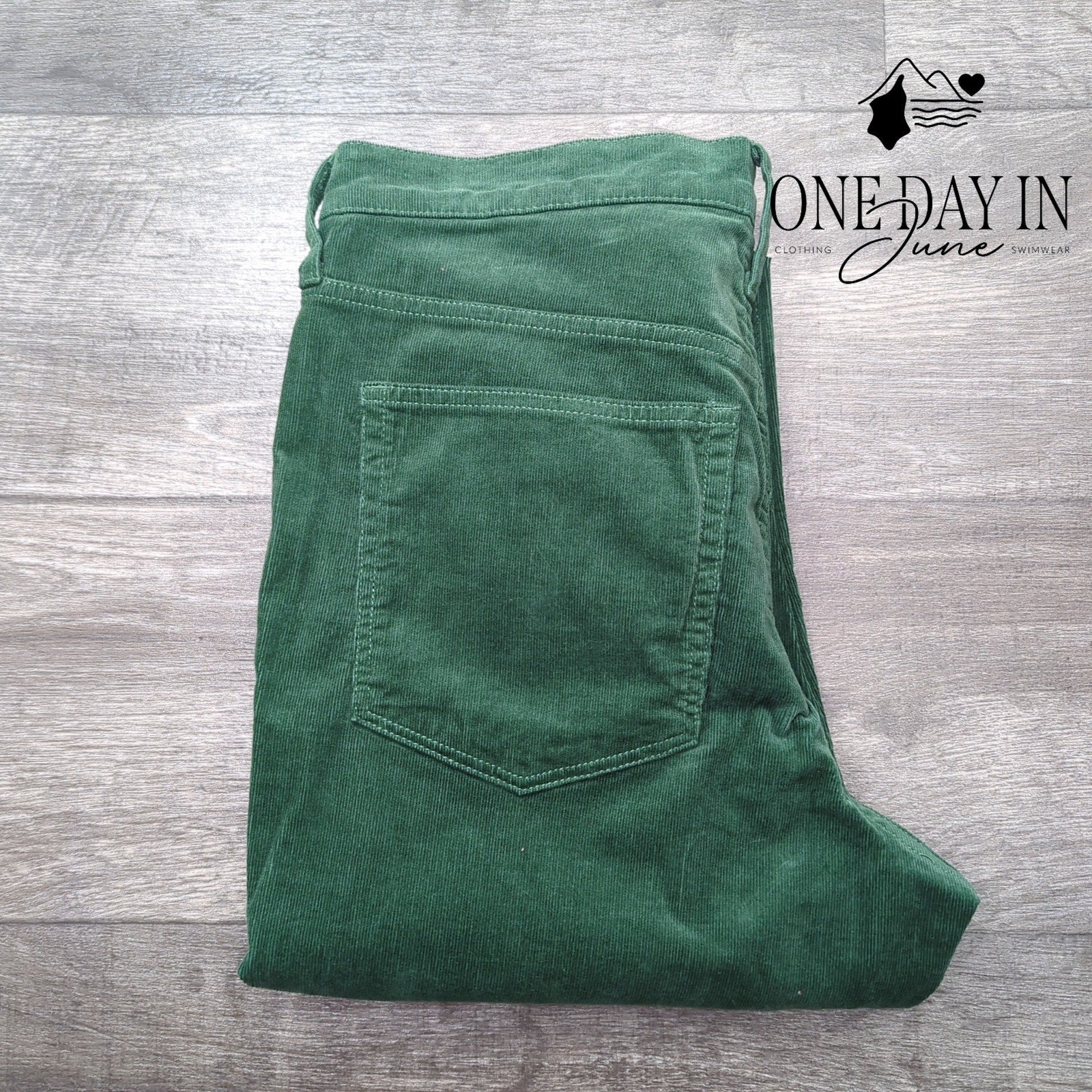 These J.Crew corduroy pants capture the essence of autumn elegance with their rich green hue and impeccably straight silhouette. Crafted from premium cotton with a whisper of elastane, they promise both comfort and sophistication for the discerning woman. Brand new with tags, they await their debut like a debutante preparing for her first grand soirée.