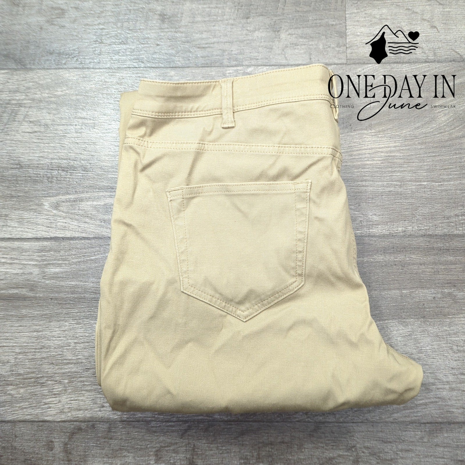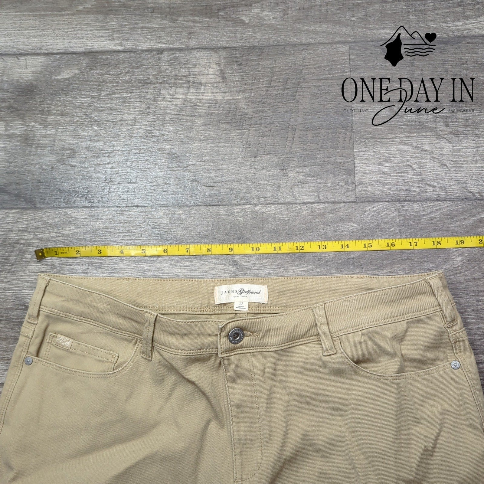 These tan straight-leg jeans are quite the treat, perfect for any gal who wants to look neat! With gentle wear and a comfy blend, these Jachs Girlfriend jeans will be your new best friend!