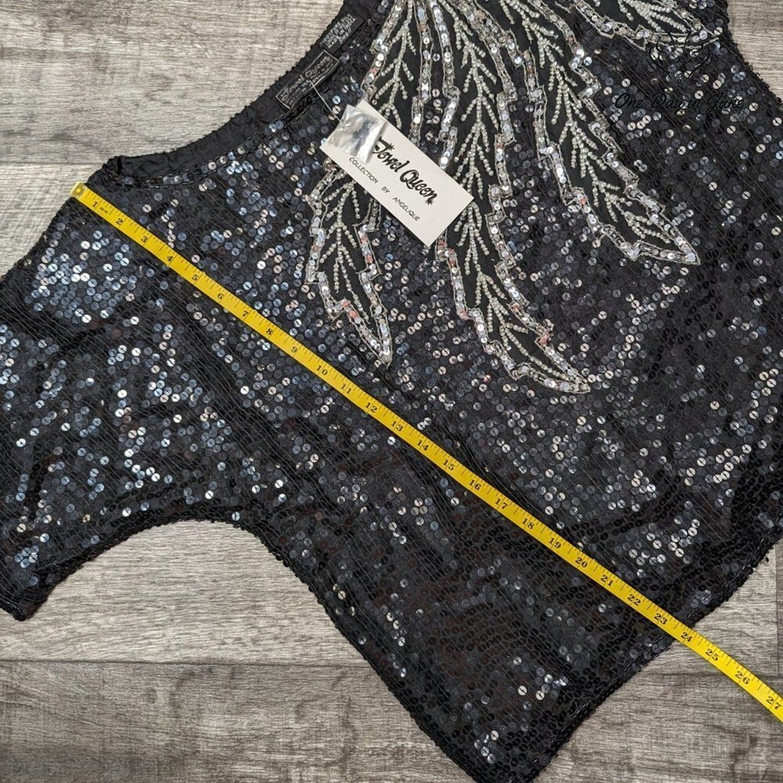As black as the night with a shimmering pop, comes the Jewel Queen's silk sequin top. It's brand new, gleaming, and oh so sleek, a perfect match for a style unique.