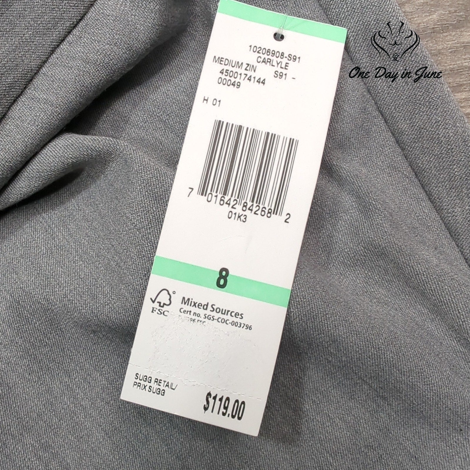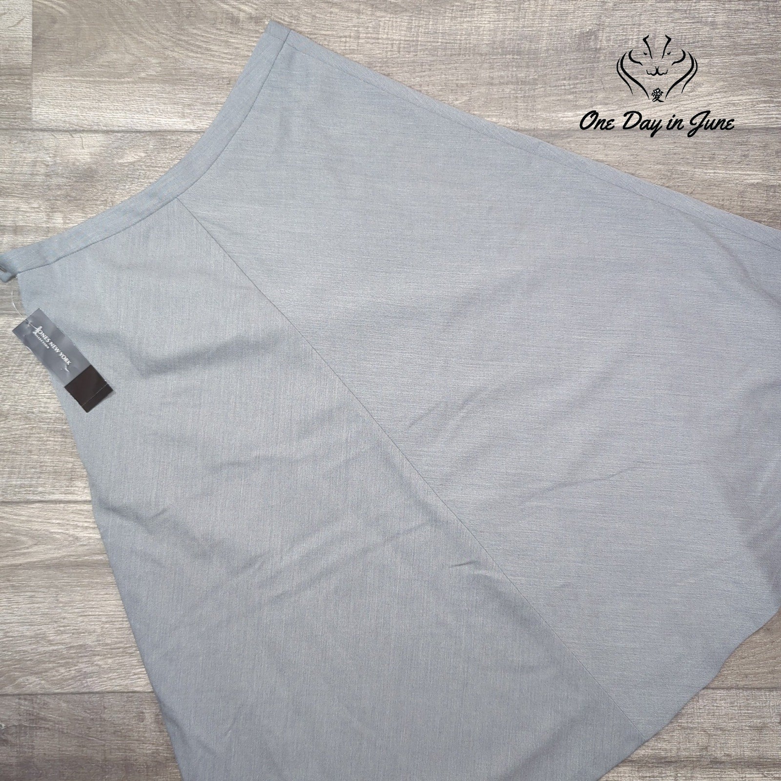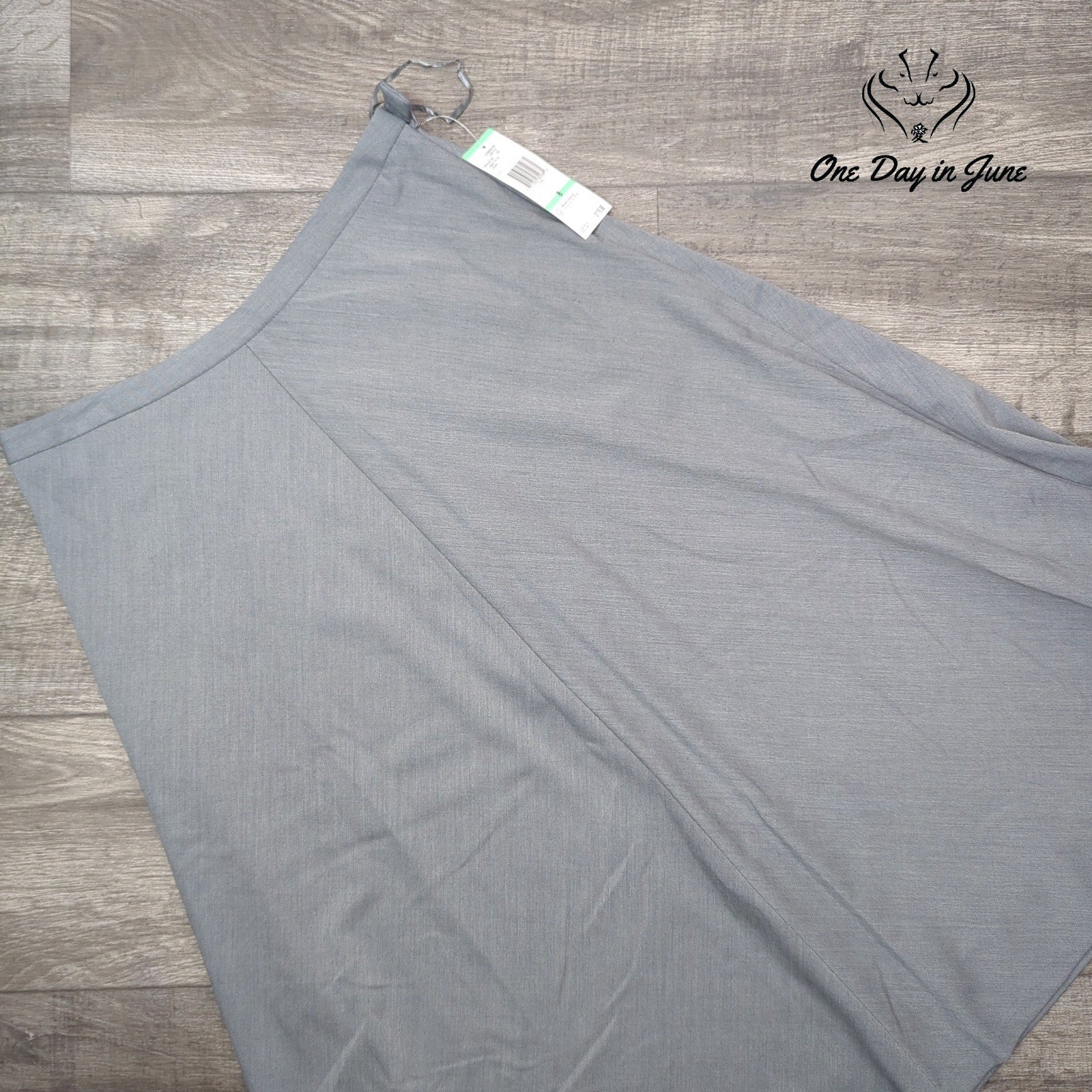 Elegance incarnate, this Jones New York midi skirt drapes gracefully in a sophisticated grey hue. Crafted from a blend of polyester, rayon, and spandex, it promises both comfort and style for the discerning woman. A timeless piece, it awaits its debut in your wardrobe, tags still affixed, ready to elevate your ensemble with effortless charm.