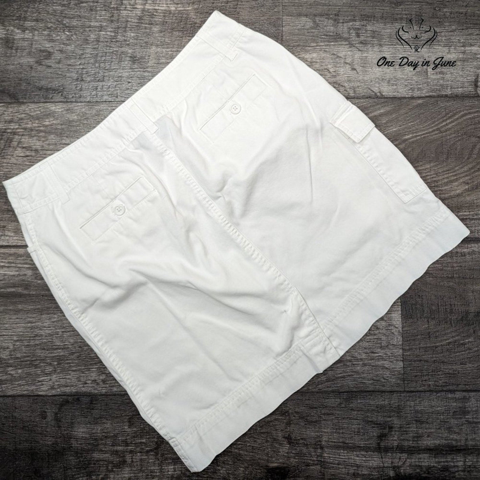 A most delightful white micro corduroy mini skirt from Jones New York Sport, fashioned in a pleasing blend of cotton and spandex for both comfort and elegance. The petite proportions are admirably suited to the lady of refined taste who desires a spirited addition to her wardrobe. In like new condition, this charming piece promises to serve its wearer with distinction on any occasion requiring a touch of casual sophistication.