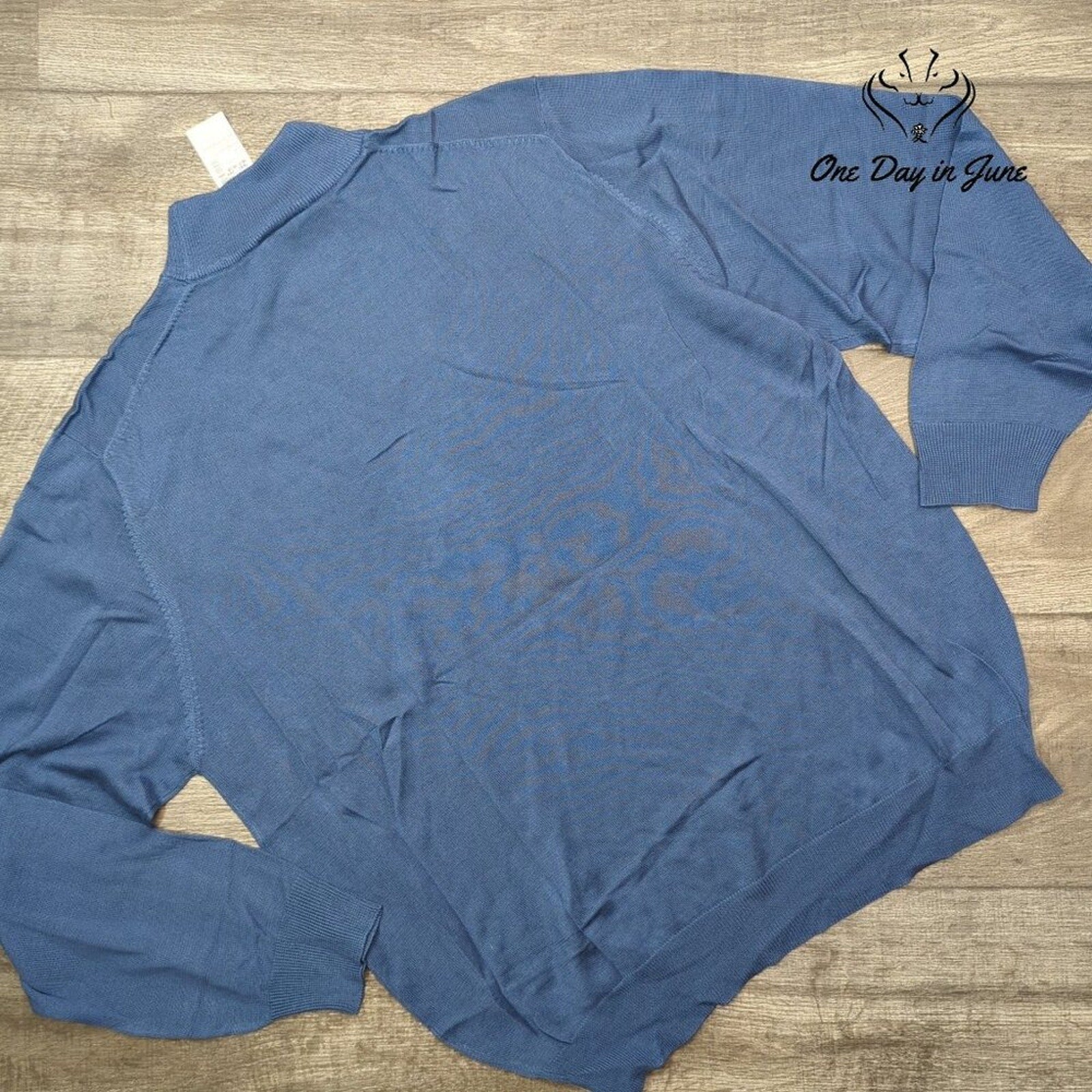 A most elegant pull-over sweater in a handsome shade of blue, fashioned entirely from the finest silk by Jos. A. Bank. The long sleeves and luxurious fabric render it perfectly suited for a gentleman of discerning taste, whether attending an evening engagement or passing a leisurely afternoon. New with tags, it awaits a wearer who appreciates both comfort and refinement in equal measure.