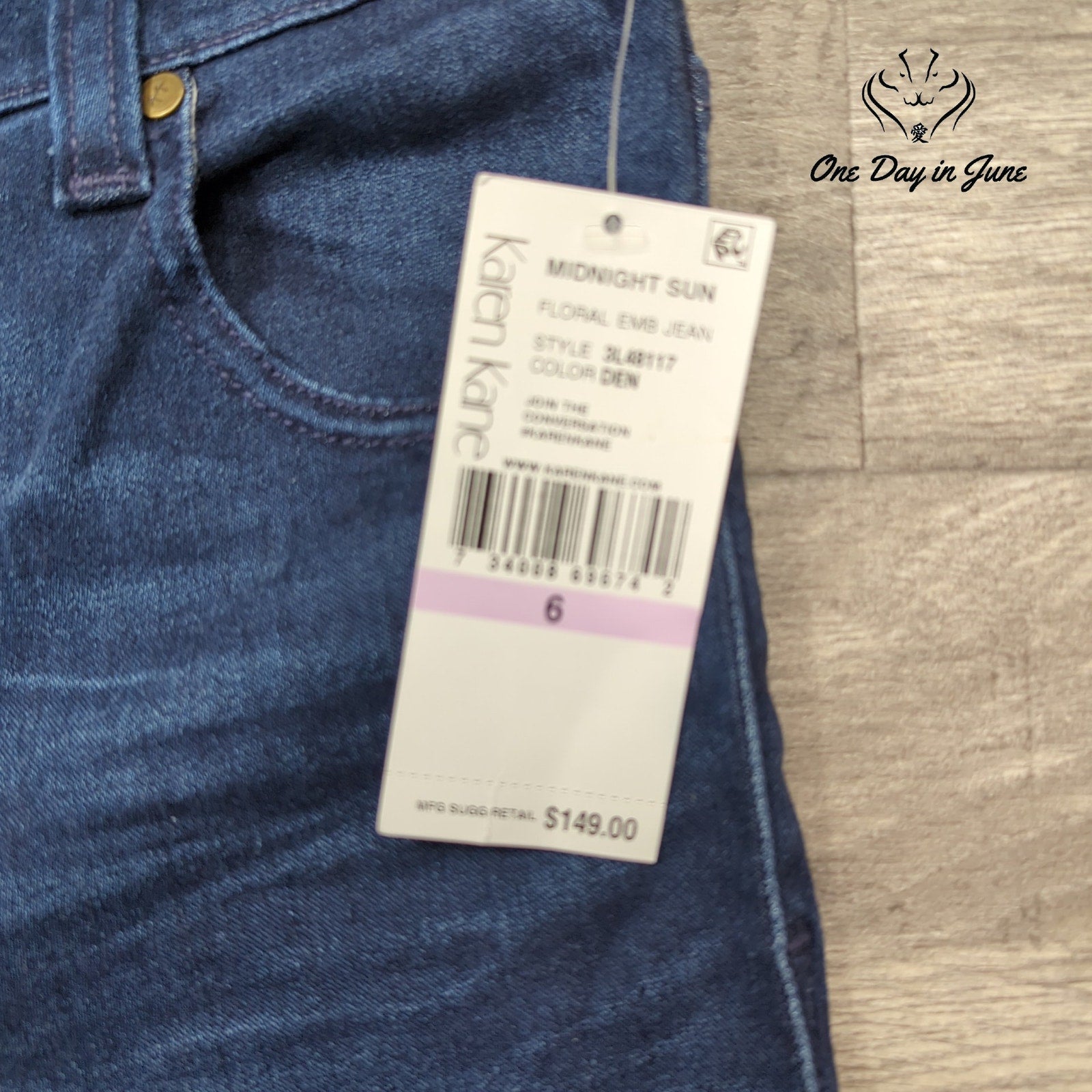These exquisite ankle jeans arrive adorned with delicate embroidery, a touch of artistry against pristine blue denim that speaks to those who appreciate refined detail. Crafted from a luxurious blend of cotton with just enough stretch for modern comfort, they possess that rare quality of being both practical and beautiful. Brand new with tags, they await their debut like debutantes at a summer garden party.