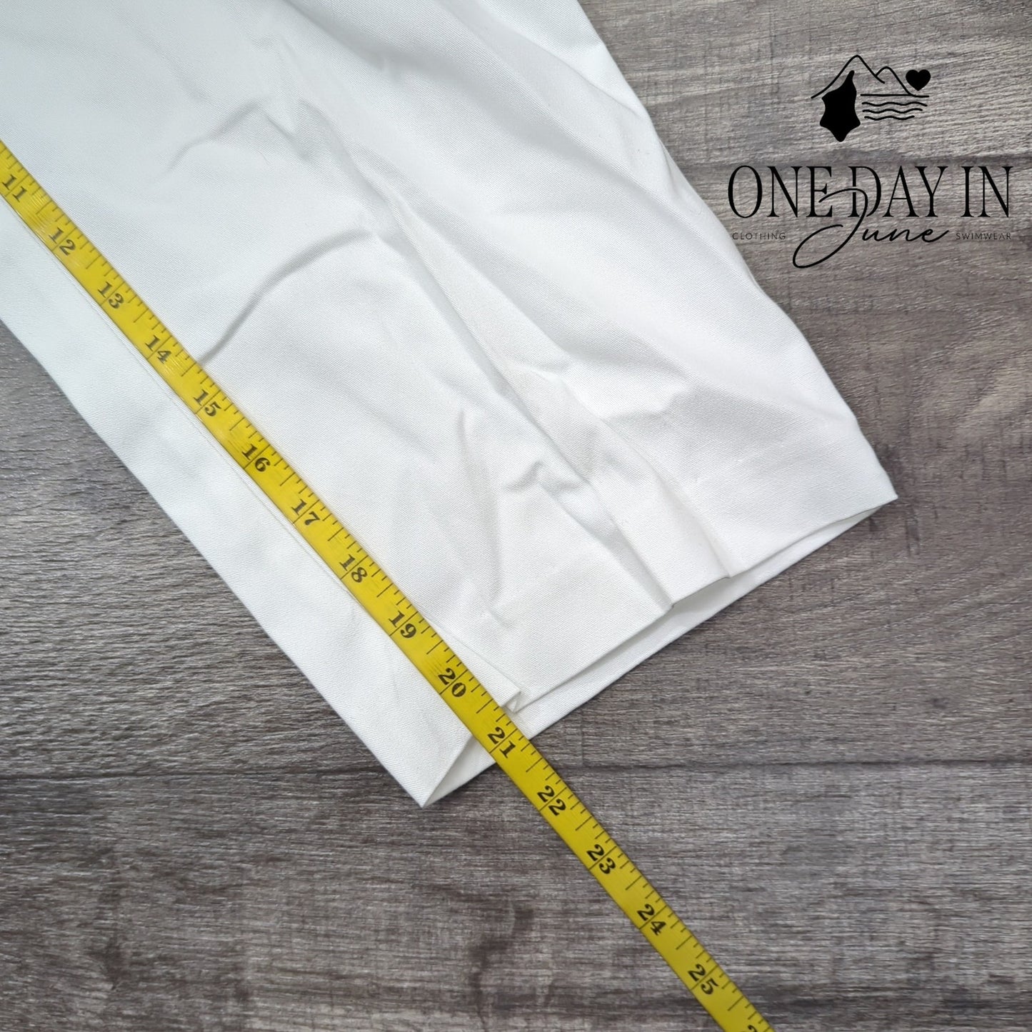 These delightful white capri pants from Kim Rogers offer the most agreeable comfort waist design, ensuring a lady may go about her daily pursuits with perfect ease and elegance. The charming cropped length proves most becoming for warmer seasons, while the refined polyester and spandex blend provides both durability and a most flattering fit. A splendid addition to any discerning woman's wardrobe, arriving in pristine condition with all original tags intact.