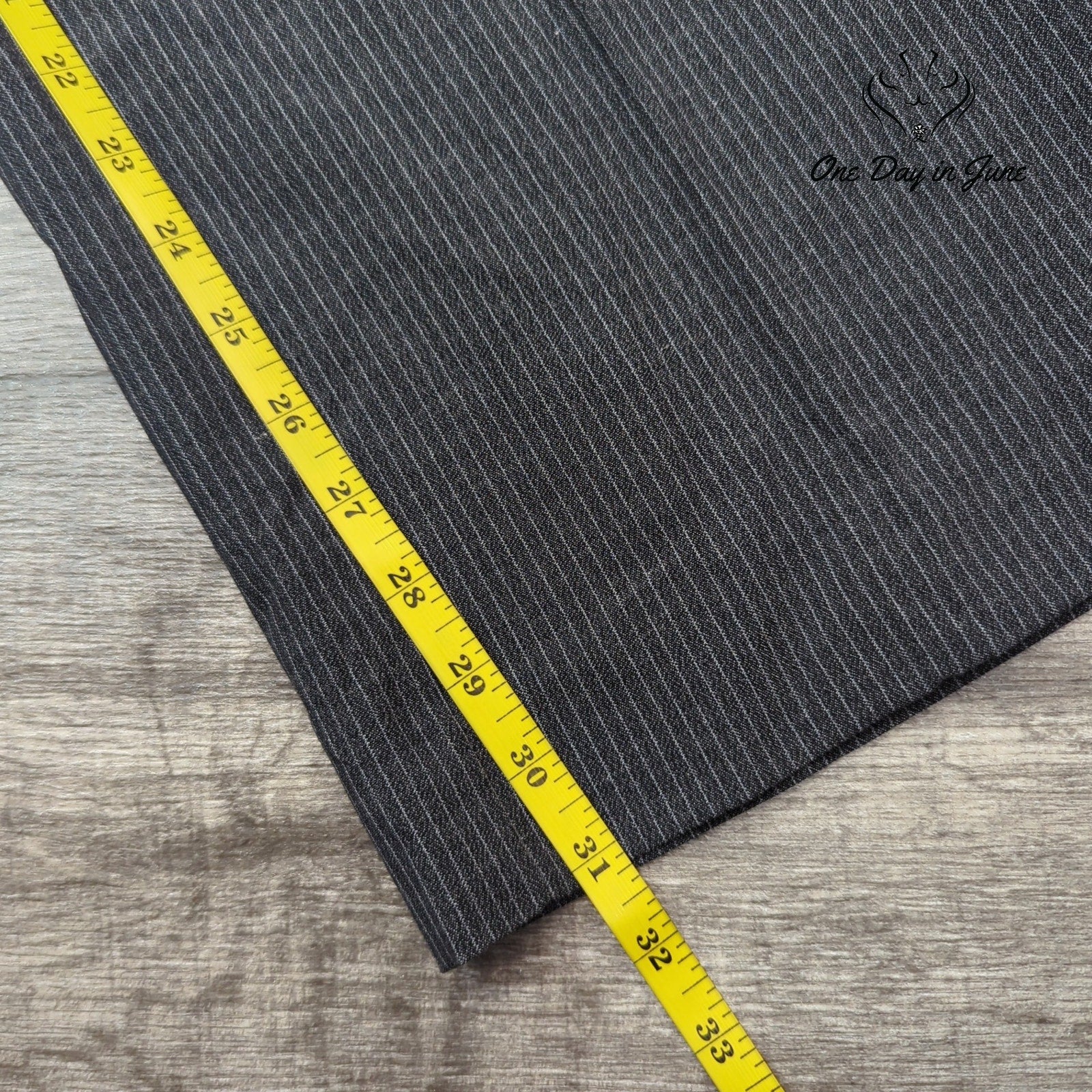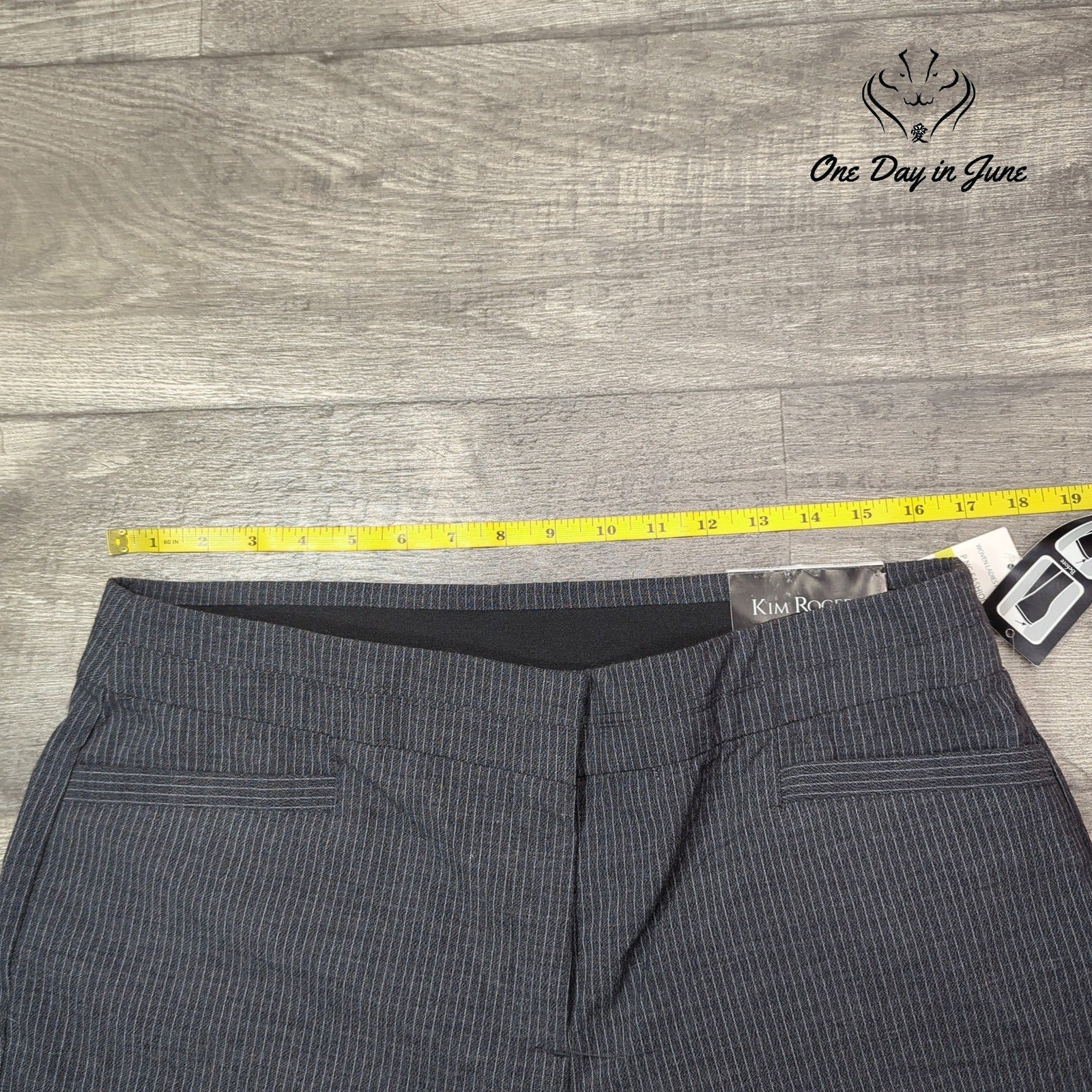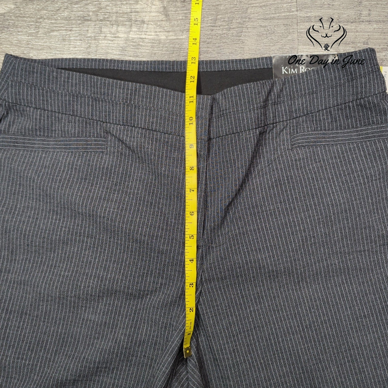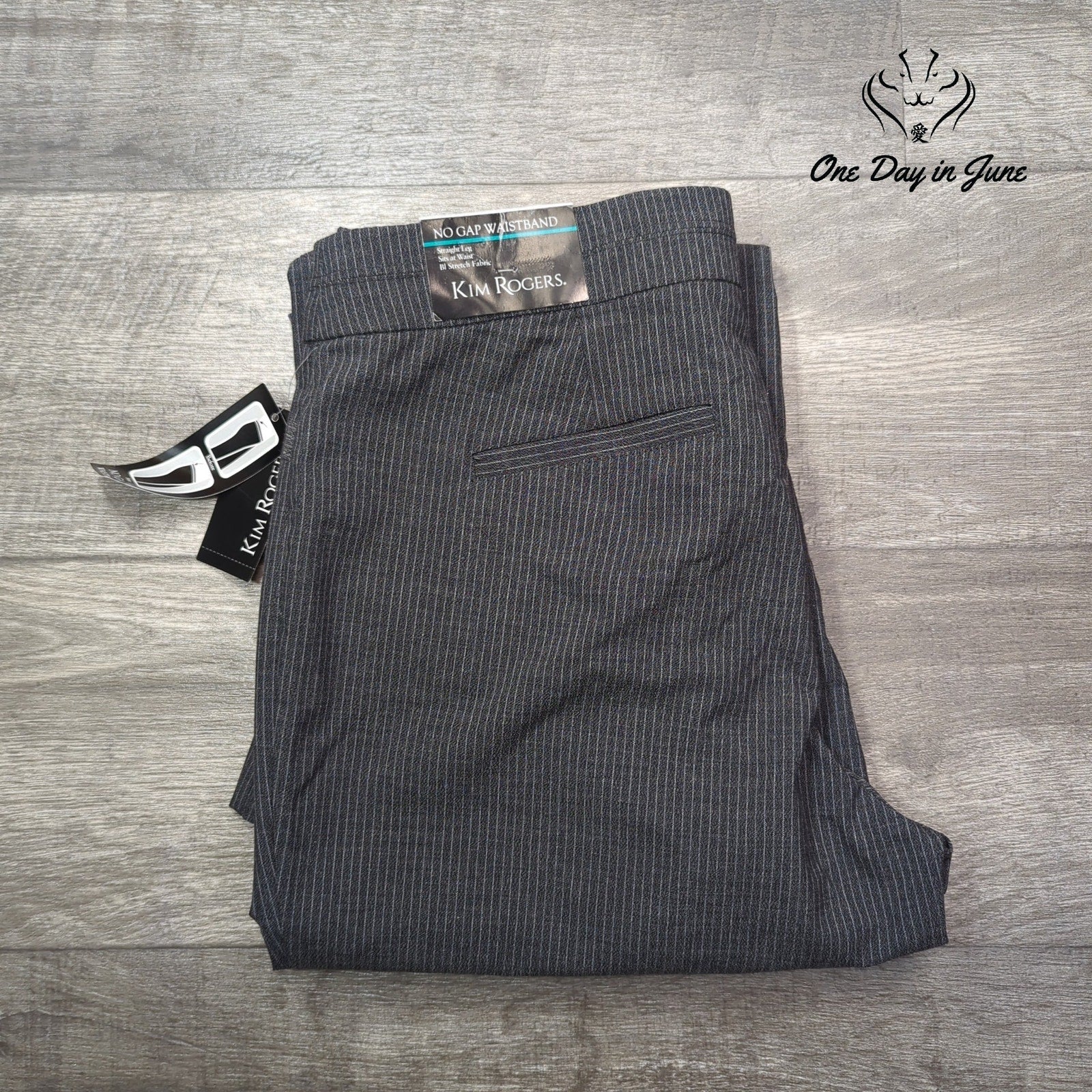 Buckle up, buckaroos, for a sartorial odyssey into the heart of corporate America. These Kim Rogers pin-striped straight-leg dress pants are the armor of choice for those brave souls navigating the savage seas of fluorescent-lit cubicles and endless PowerPoint presentations. Grey as a November sky, crisp as a freshly minted dollar bill, these polyester-rayon-spandex marvels are ready to carry you through the fever dream of modern business with unflappable style.