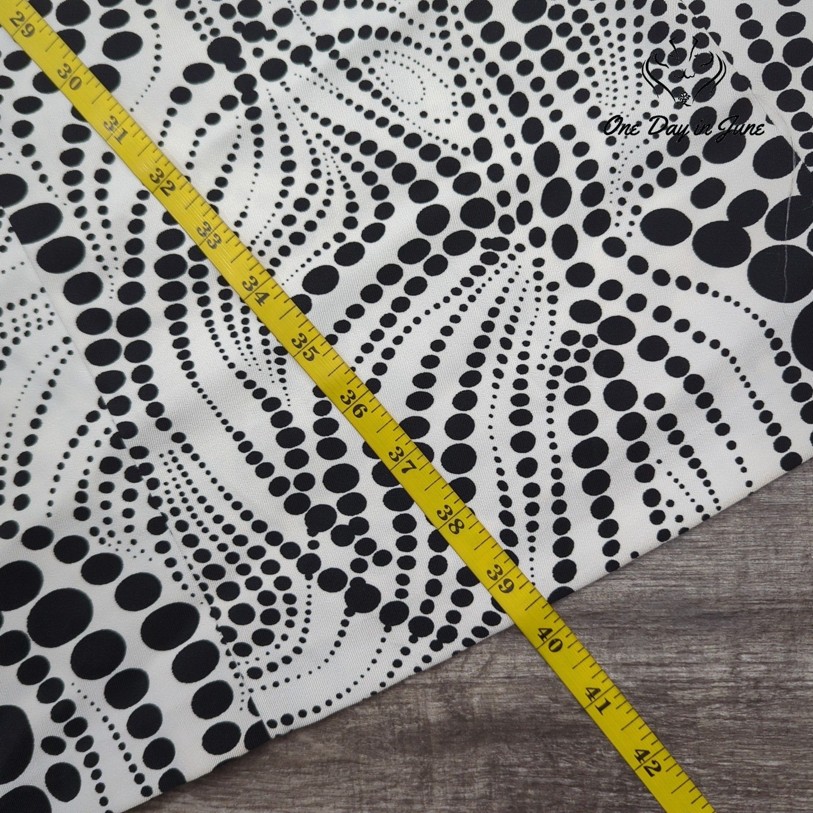 A most becoming sleeveless frock in a striking palette of white and black, perfectly suited for both formal occasions and casual outings. The dress's delightful blend of polyester and spandex ensures both comfort and elegance, with a fabric that gracefully skims the figure while maintaining its pristine shape throughout the day's activities.