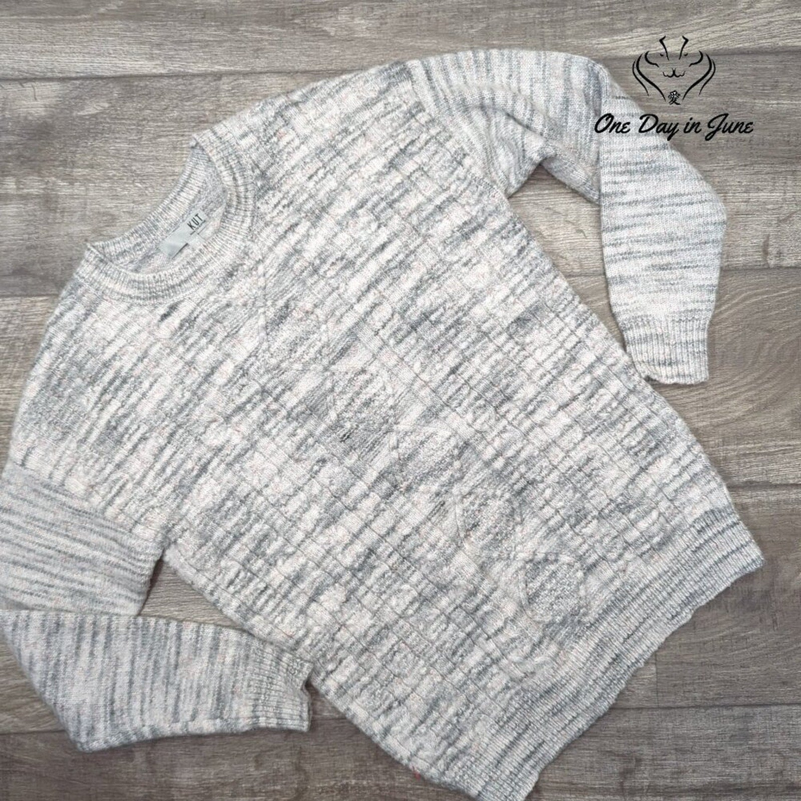 In grey, it sways, with a metallic daze, perfect for those chilly days! Like new and chic, it's Kut from the Kloth, a sweater that’s sure to make you stand tall.